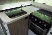 Onboard facilities include fresh and waste water tanks, dual fuel heating and hot water, dual fuel hob, gas oven and grill.