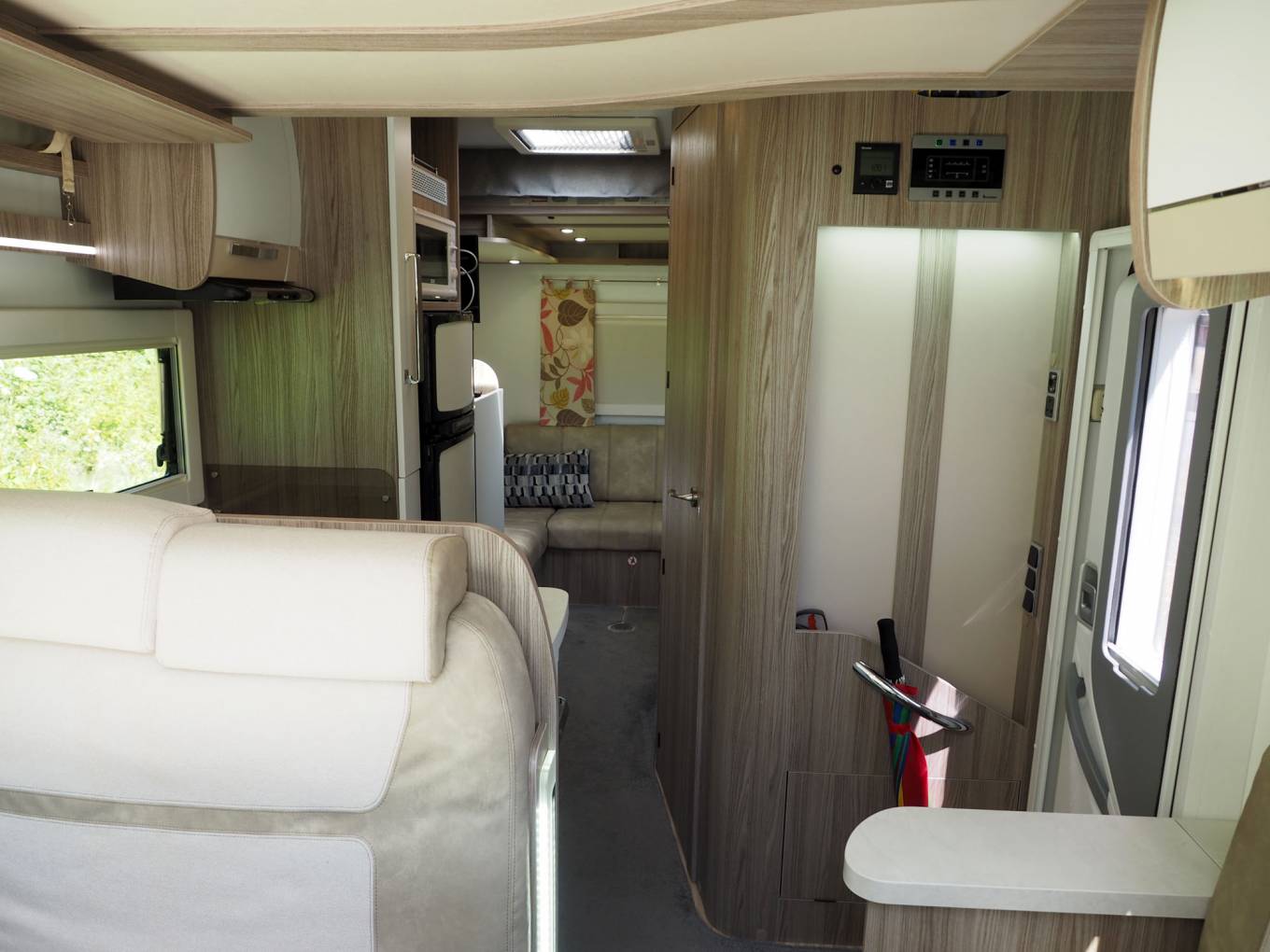 The 482 variant offers 4 x 3 point seatbelts, two dinettes and two electrically lowering double beds, with a central washroom having a lined shower cubicle and kitchen with full facilities including fridge freezer and microwave, storage drawers and lockers. Its an outstanding specification package, enhanced by the recently fitted 230v habitation air conditioning.