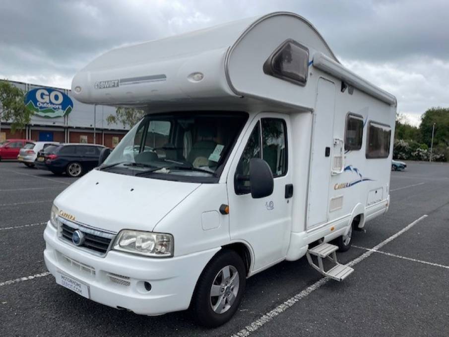 2006 SWIFT CARRERA 590 PR MOTORHOME FOR SALE. Based on a 2.3L engine with a manual transmission. 42,500 miles travelled and MOTd until MAY 2025. Length 6.16 metres and the motorhome can be driven on a standard car licence. Serviced and a new timing belt fitted in 2023.