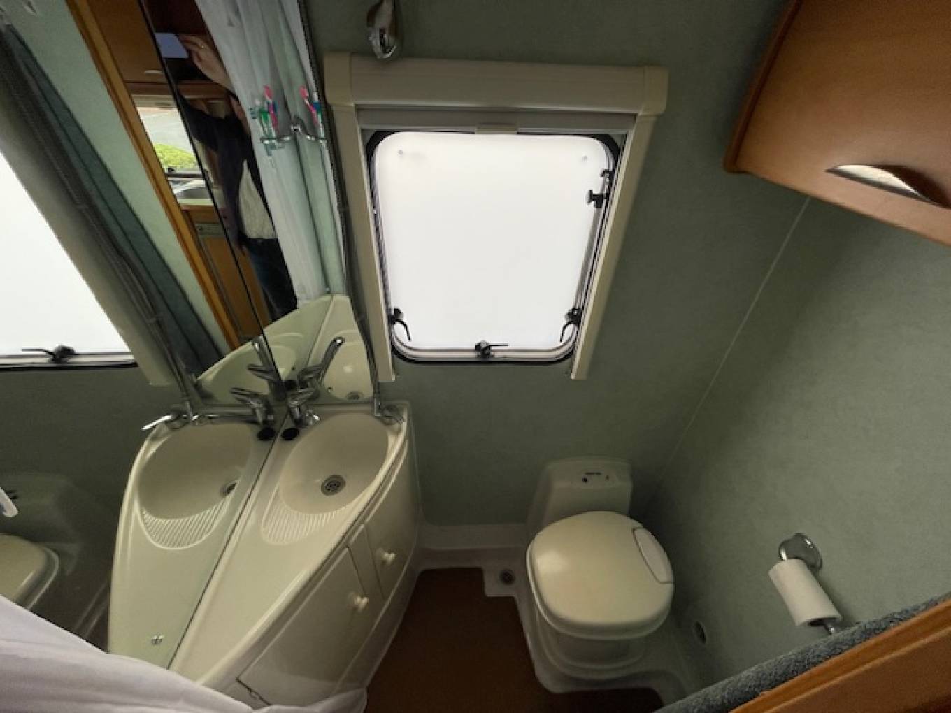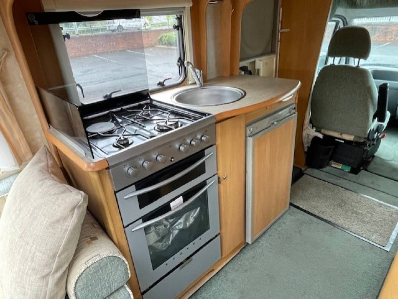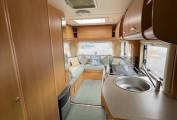 Kitchen area is spacious and with a full sized cooker, sink with mixer taps and a 3 way fridge freezer. Great storage throughout the motorhome. Bathroom has a shower, cassette toilet, wash hand basin and a vanity mirror.