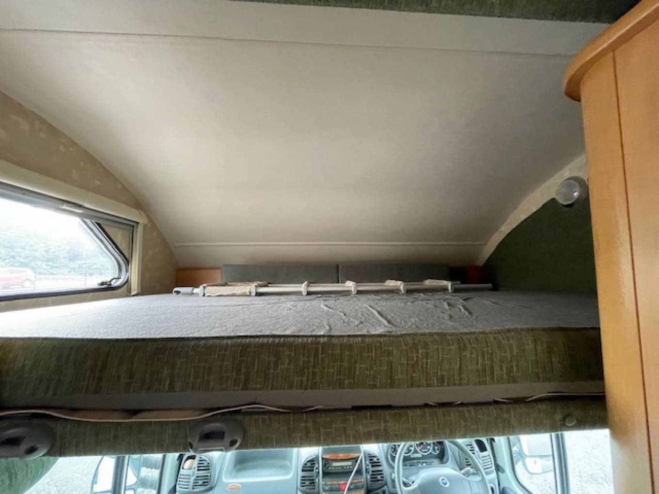 The U-shaped lounge at the rear can be used for dining, sleeping and relaxing. This area makes up into a large double bed. The bed above the cab will accommodate another 2 people.
