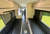 Additional features: immobiliser, cab air con, cruise control, electric windows and mirrors, dodo sound deadening, fully bonded insulated floor, built in cab blinds, full leather interior, electric Thule step, external bbq point, external shower point, solar panel, blown heating, 20L GAS-IT underslung LPG tank and lithium battery.