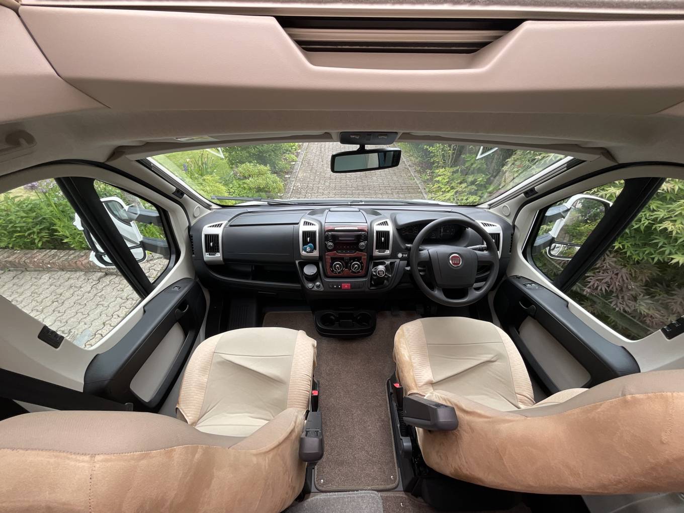 The cab has a large panoramic sunroof above, two swivelling seats, a multimedia unit with, iPod input and Bluetooth phone connectivity, cruise control, mirror mounted camera monitor, electric windows, mirrors, central locking plus a Fiat alarm system. Two 12v power outlets and there are built-in privacy blinds to the windscreen and side windows.