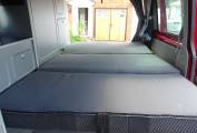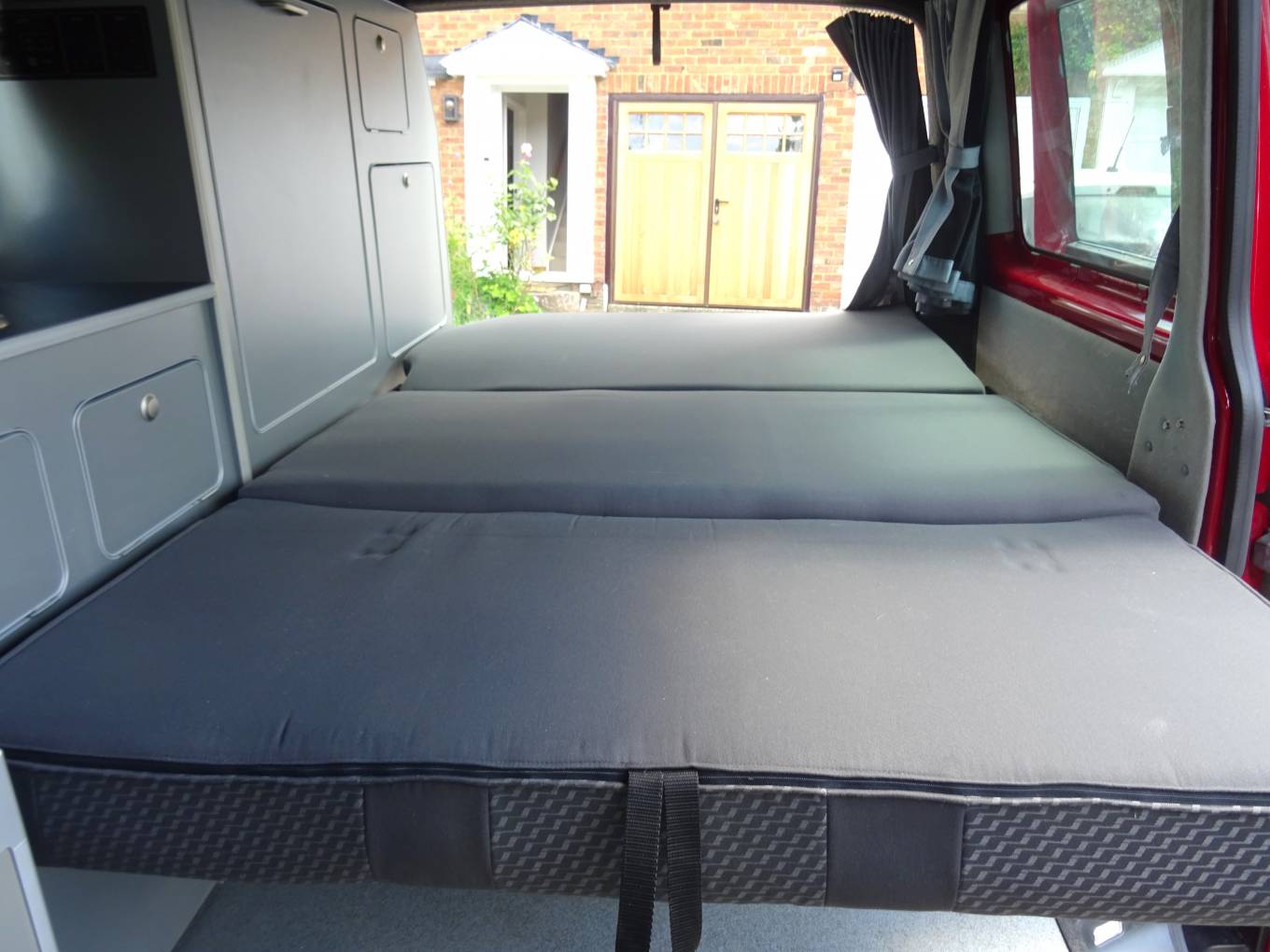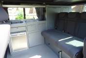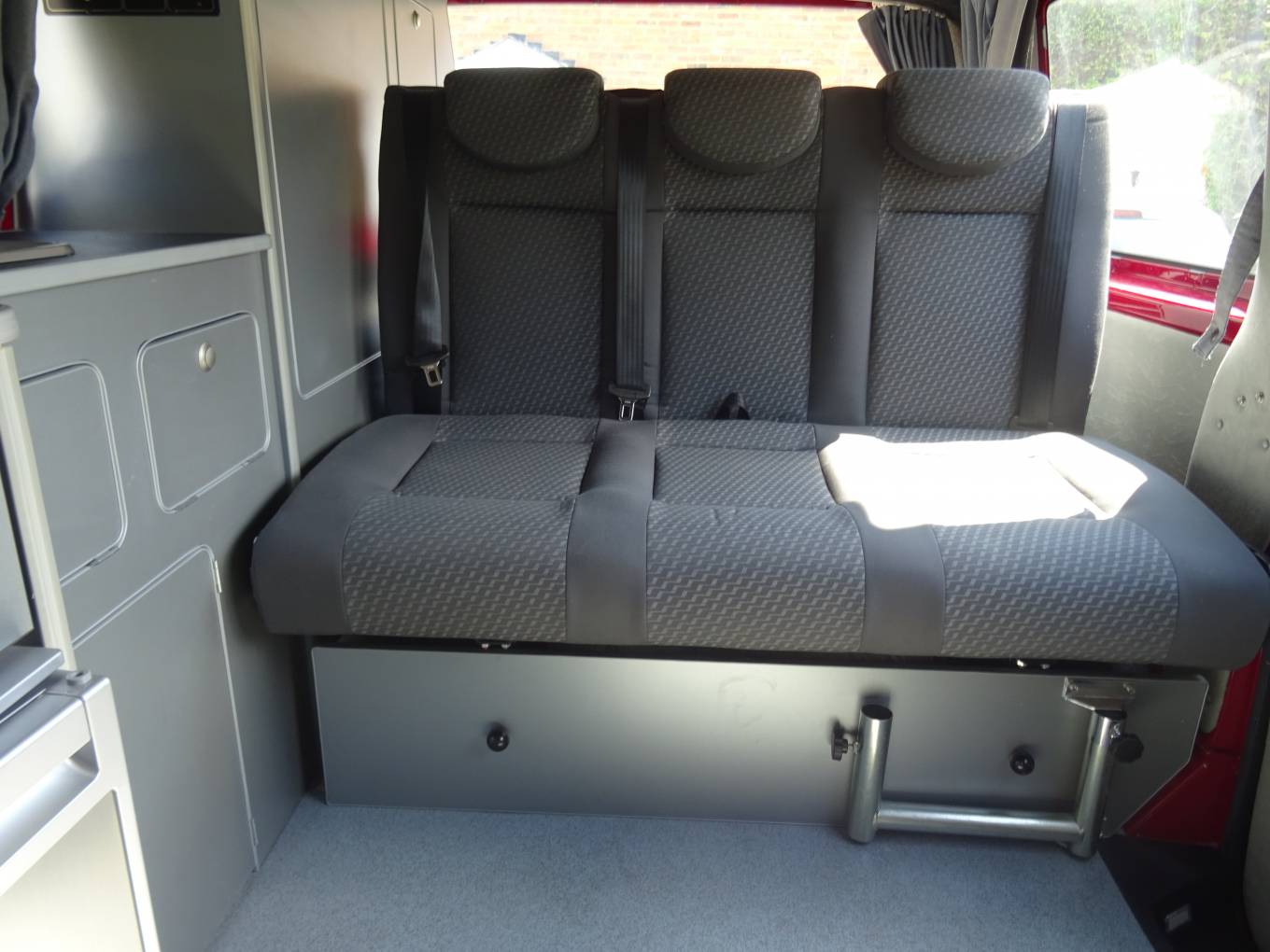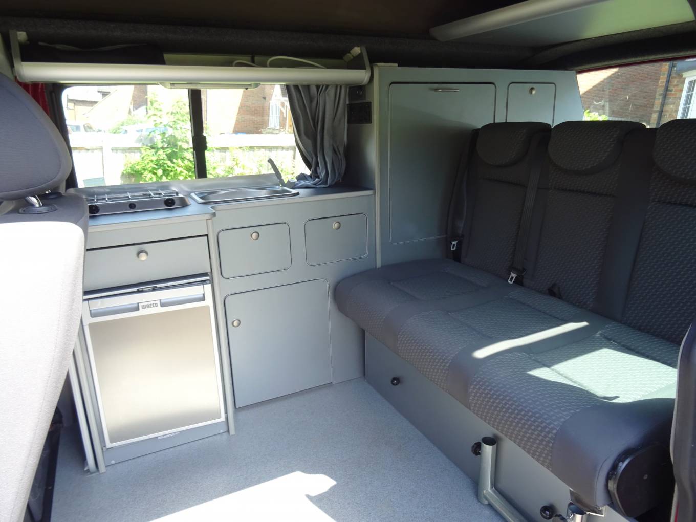 Features include: Reimo Conversion, 333 Reimo Bed (more boot space and rear viewing seat), 5 Belted Seats, Pop Top Roof, good storage throughout including under rear seats, adjustable table, swivel seats, sink and tap, 2 gas burner hob, 12v Fridge with Freezer box, Curtains, Wardrobe, Porta Potti, Gas Bottle, 240v hook up, 12v leisure battery with fitted split charger, Spare Wheel, Awning Rail, Bed Boards can be made or bought to give us a 4 Berth.