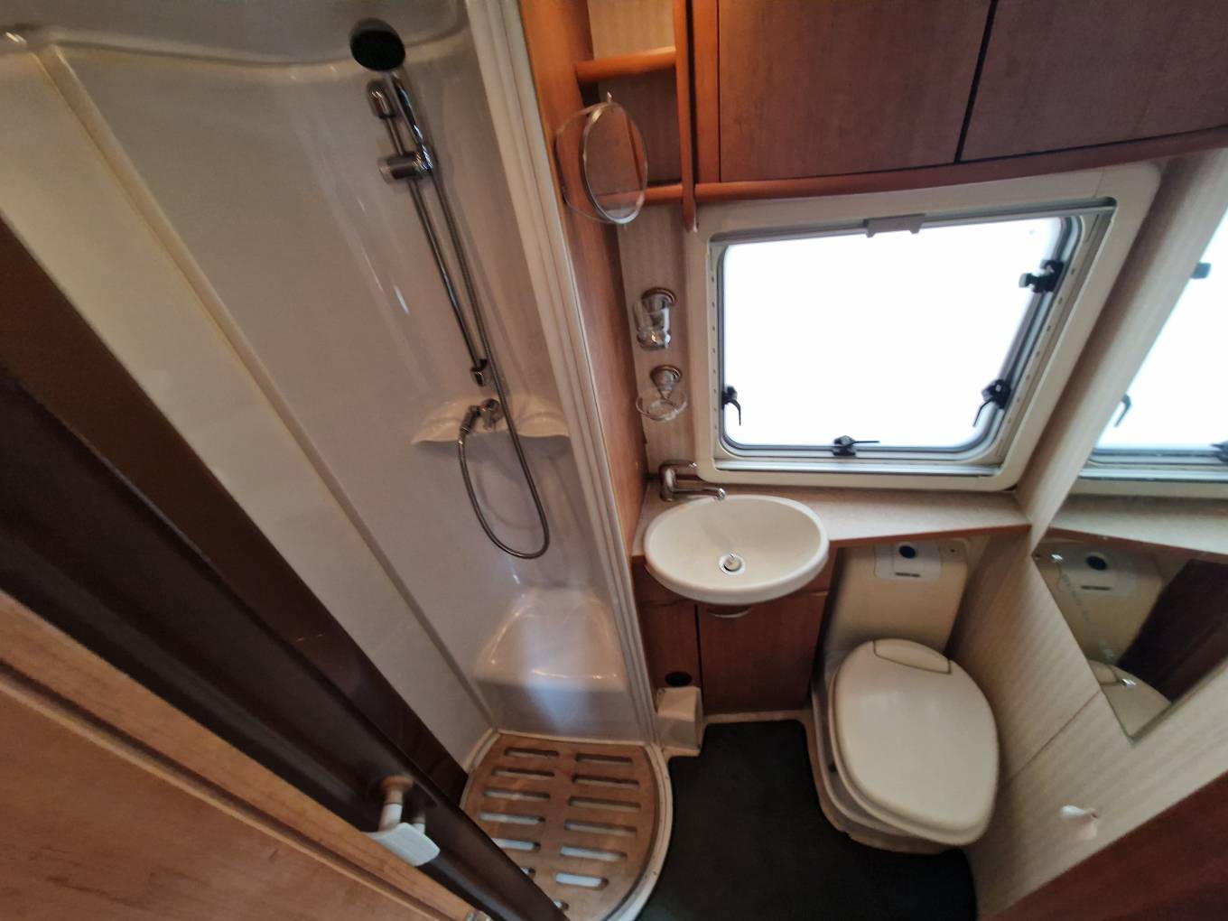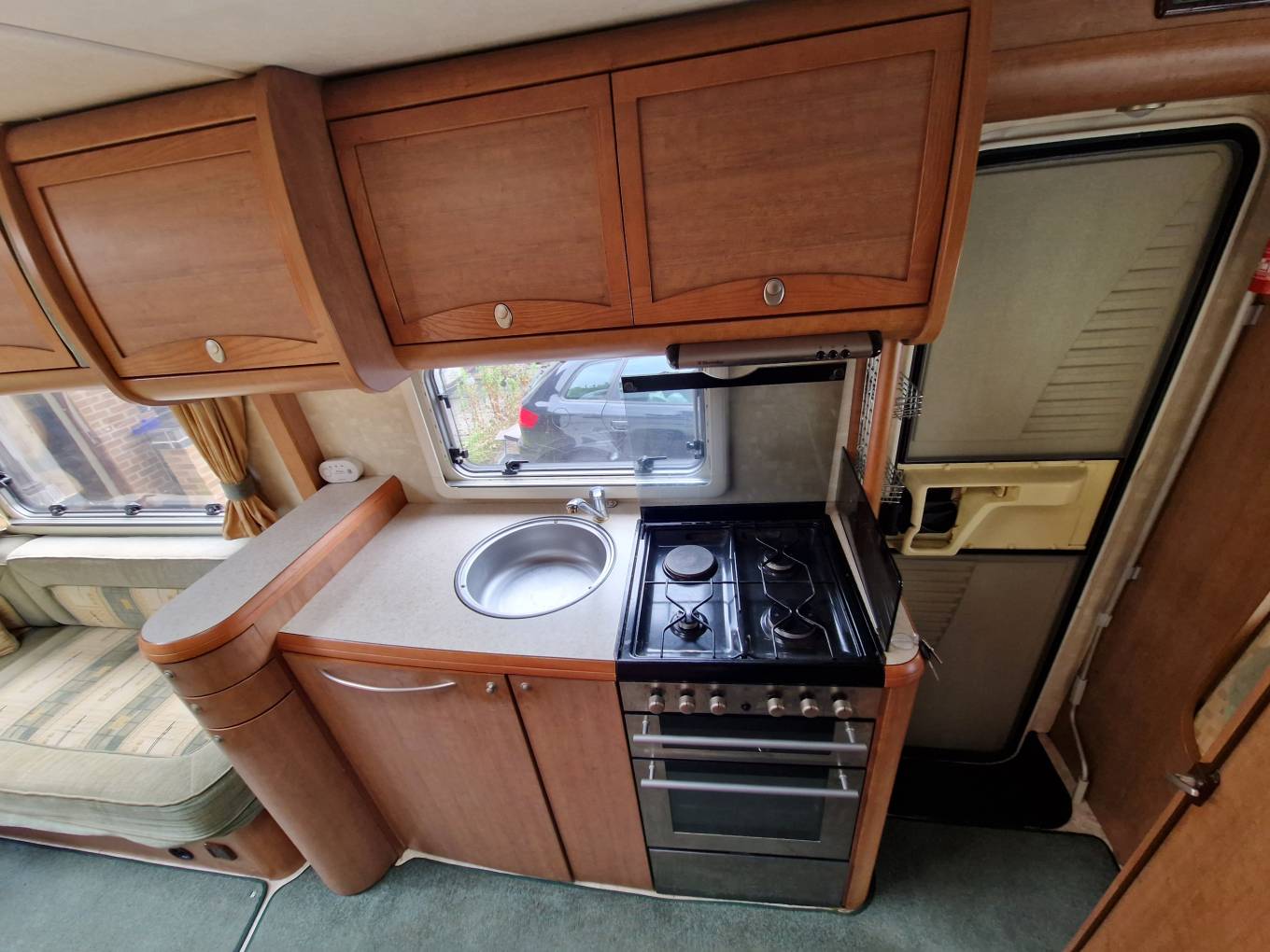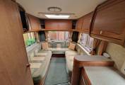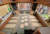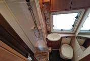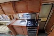 cubicle, and a centre kitchen. There’s loads of storage inside the motorhome,