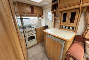 Stepping inside the Autocrusie using the habitation door you enter at the rear kitchen, this has all facilities needed on your ventures away including an full oven & grill, sink with mixer tap, three-way fridge with freezer compartment, plenty of workspace space, storage and my personal favourite the drinks cabinet.