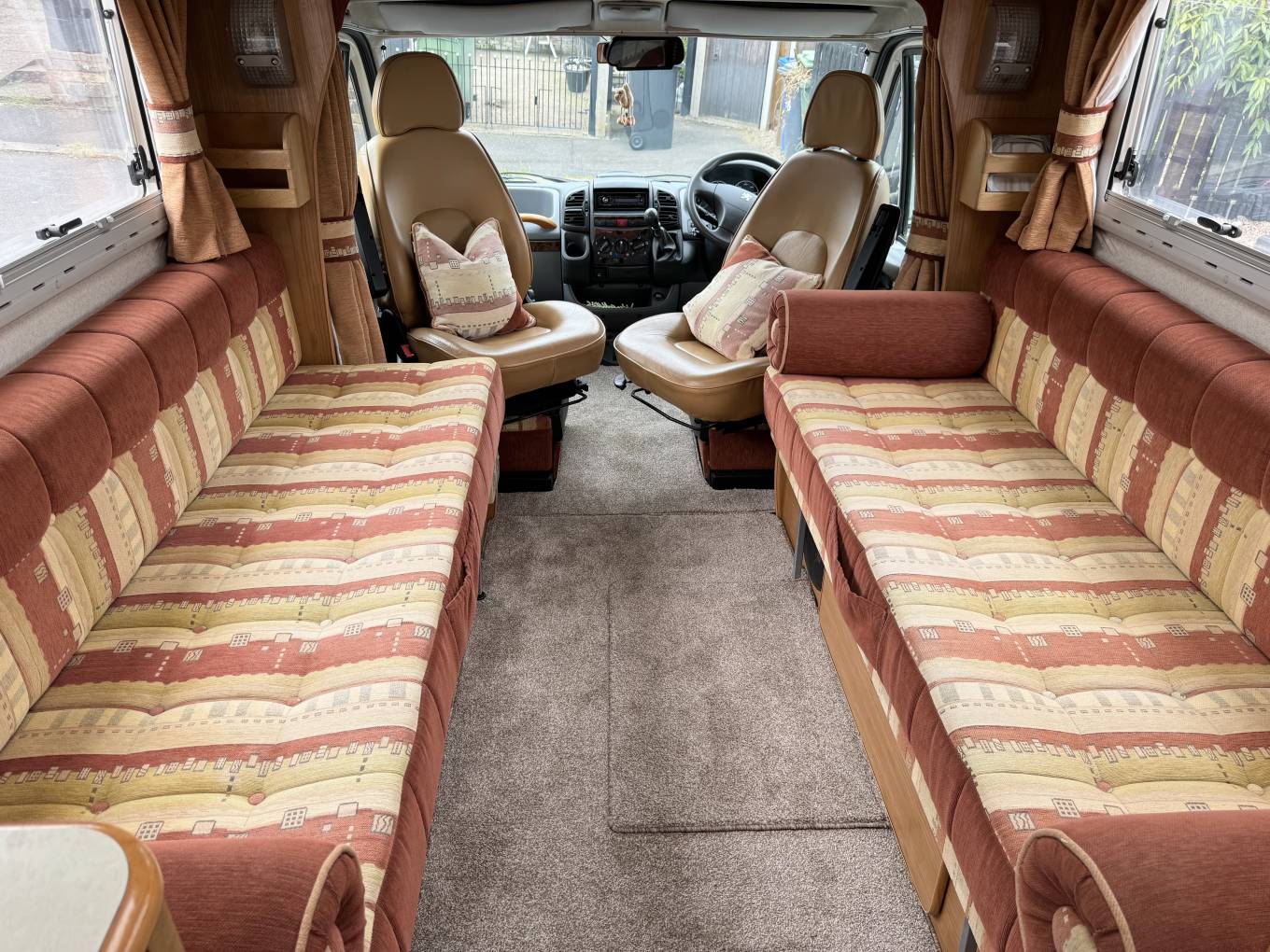This is 2 berth with 2 travelling seat belts, based on a 2.2L diesel, manual transmission, Peugeot chassis and its maximum gross weight is under 3500kgs so anyone with a UK driving license can acquire this motorhome.