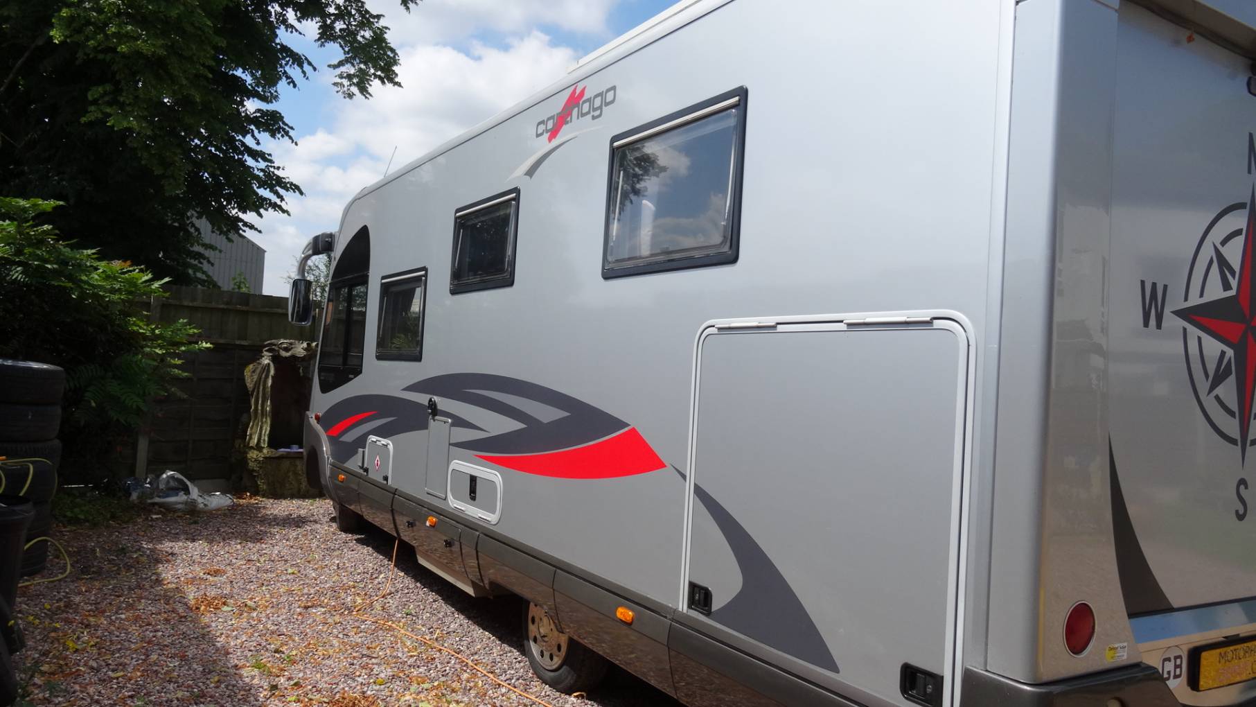Externally there are BBQ and a shower points, aerial, solar panel, awning, reversing camera and tow bar. There are several external lockers and a large