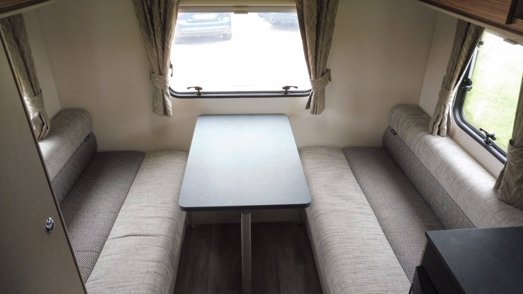 Moving rearwards there is a full dinette with side sofa to accommodate 6 around an extendable table.