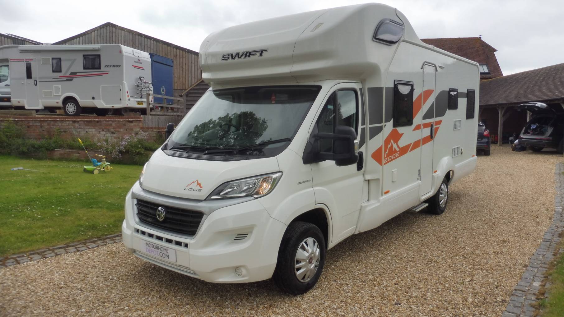 The Swift Edge 486 is the perfect family motorhome with two living areas, 6 berths and 6 seat belts. Sitting atop the ubiquitous Fiat Ducato 2.3L 6-speed chassis the cab is set up with air-con, cruise control and DAB radio with phone preparation.