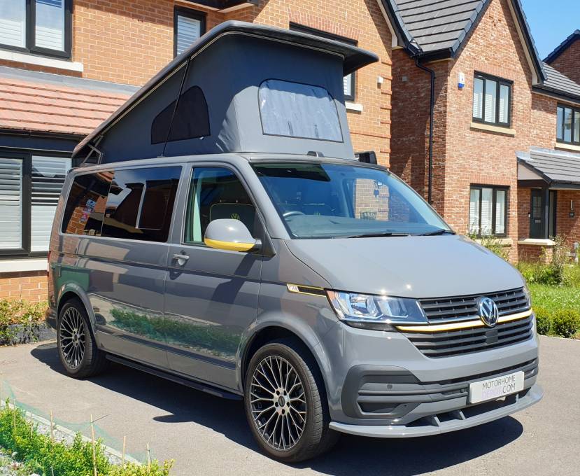 Motorhome Depot Ellesmere and Shrewsbury are pleased to present for sale this Platinum Wave 2022 VW 4 berth, 5 belt, campervan, 1 owner with only 15,789 miles on the clock. Based on the VW 6.1 Transporter, it is powered by the superb VW 2.0TDi engine and 5 speed gearbox. The cab has all the usual VW spec - adaptive cruise control, electric mirrors, electric windows, front and rear parking sensors, front fog lights, Apple car play in the head unit, sat nav, aircon and reversing camera.