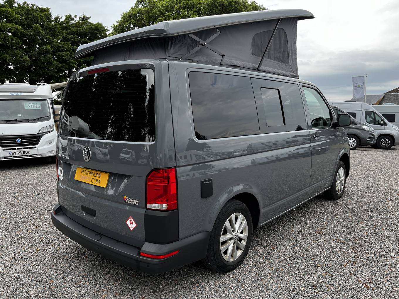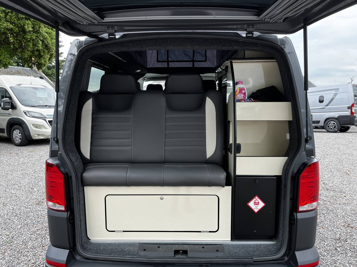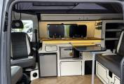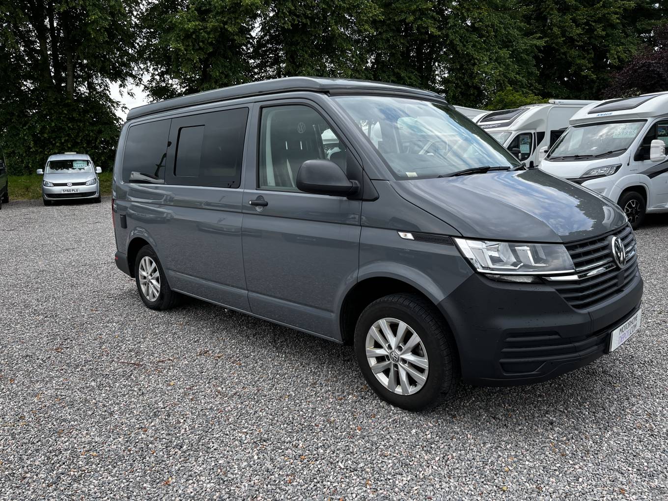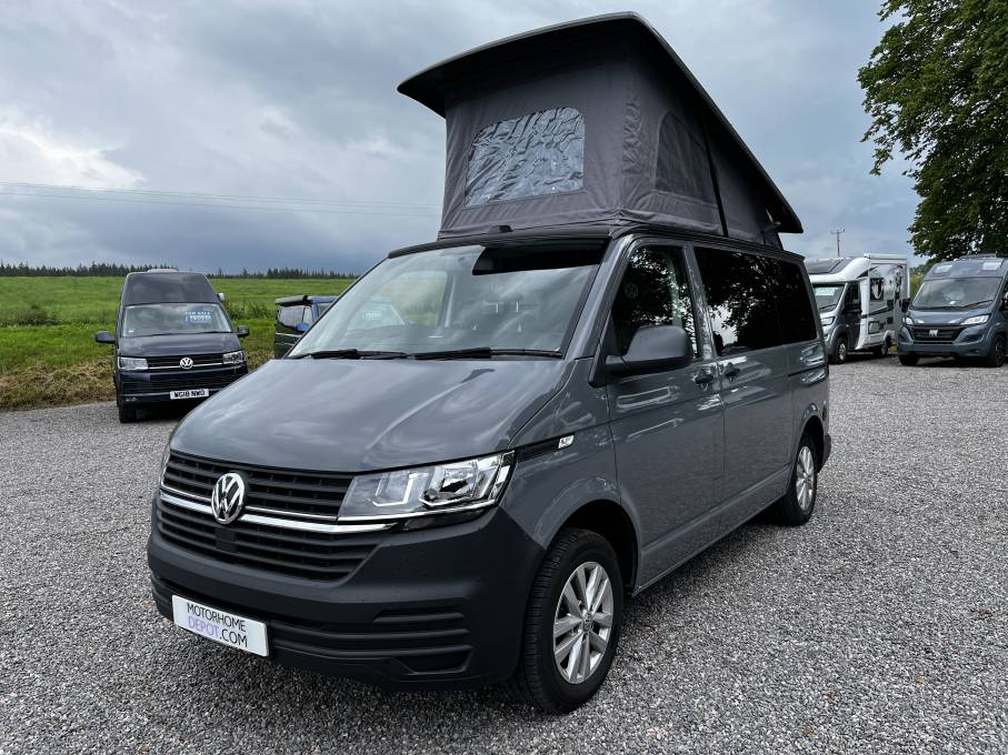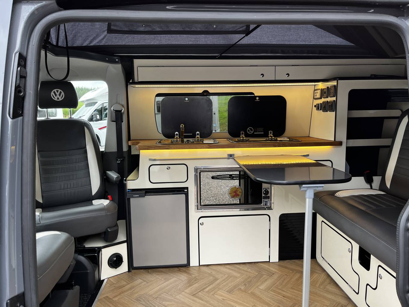 This 2021 VW T28 is a lovely Caledonian Campers conversion with a 2L Euro 6 Engine and Webasto Diesel heater making it a perfect daily vehicle and all round campervan. The cab benefits from a 5 speed Manual, AC, Cruise