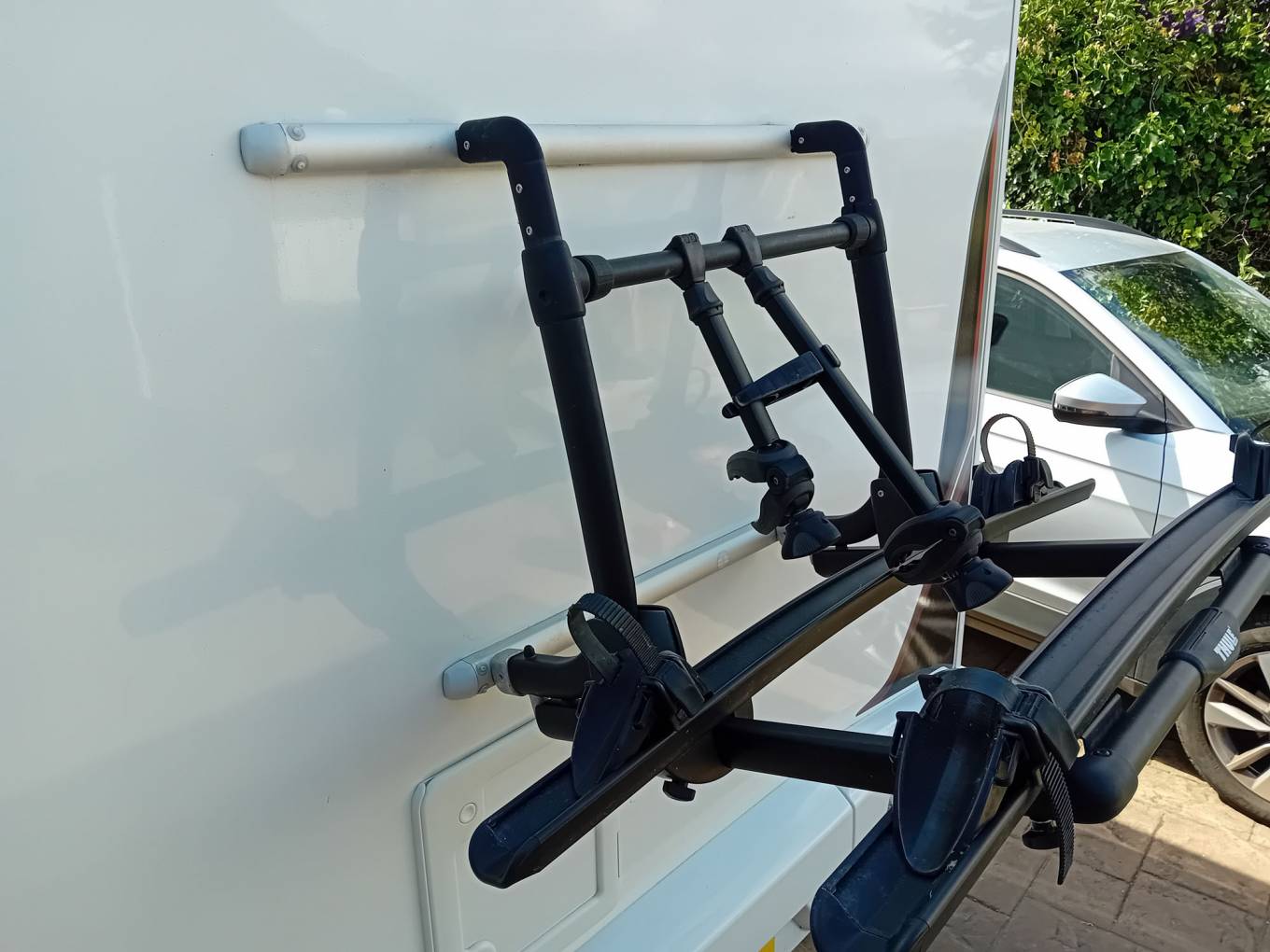 Onboard systems and equipment include fresh and waste water tanks, dual fuel heating and hot water, solar panel, removeable carpets, TV with aerial, external BBQ point, Thule 2 bike rack.