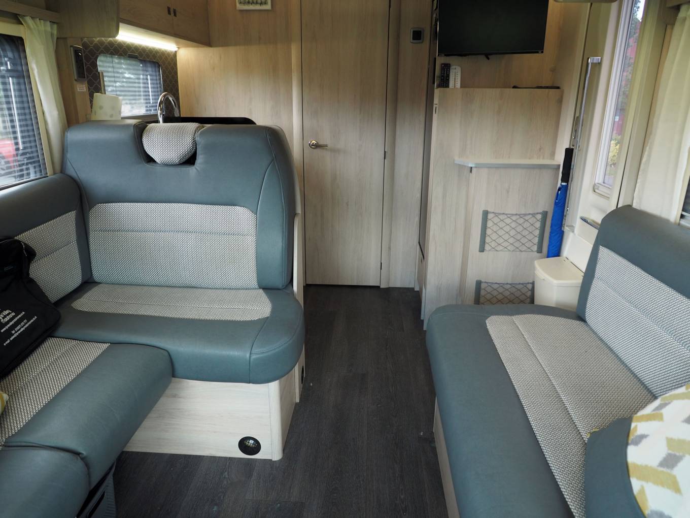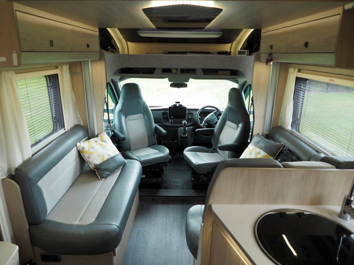 Even though a small motorhome, this F60 has the latest generation Ford Transit automatic chassis, with a punchy 130bhp on tap and a host of cab features including automatic wipers and lights, cab air conditioning, cruise control, full media unit with satnav, DAB radio, Apple Car Play, reversing camera.