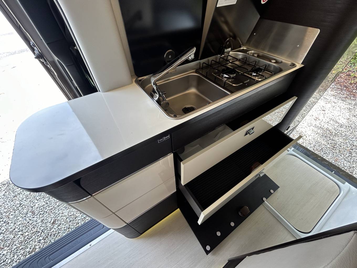 Sleek and contemporary interior will not leave you wanting for anything, day or night this is a motorhome that gives you complete independence to get out there and see the places you want to see whether that is a city break or time in the wild! The Jules Verne really is practical, functional and agile at just 5 metres in length. The double bed in the van is one that is made with ease and offers great comfort! You also have the pop top that offers you more space to stand up in the living area and another sleeping area and is accessed with ease at the rear via the small ladders provided.