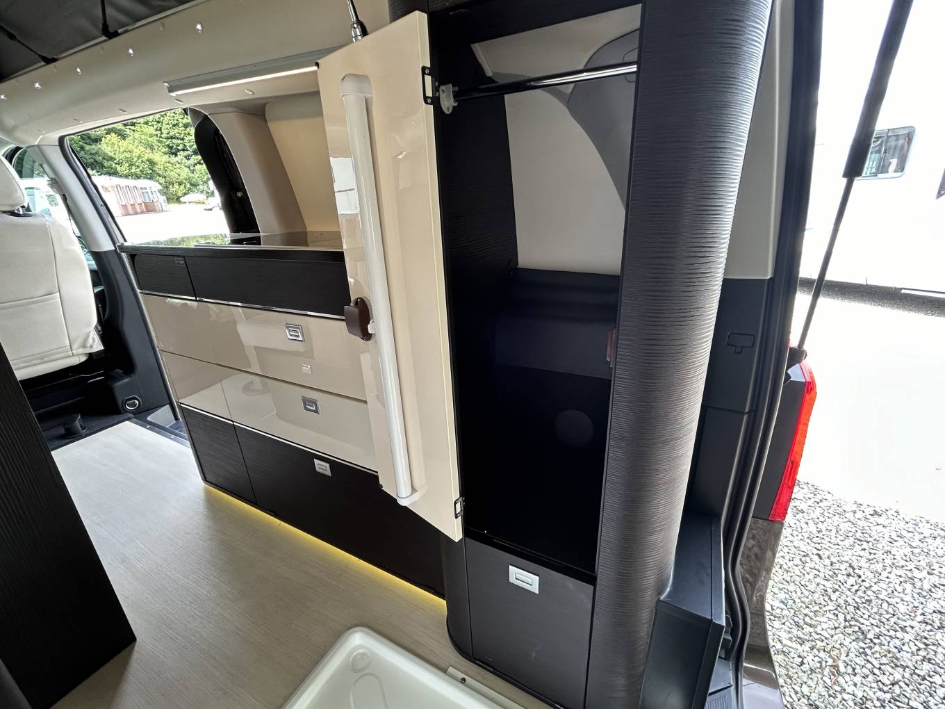 Another thing you will notice in the Westfalia is the storage, every area that can be used as storage is and you have wardrobe space to the rear as well as plenty of draws in the kitchen area and even in the flooring! No space in the camper has been wasted.