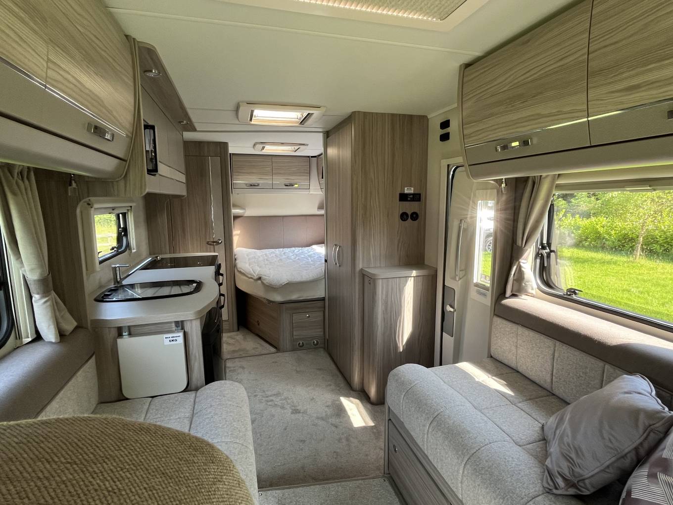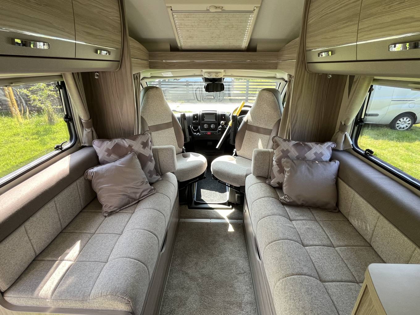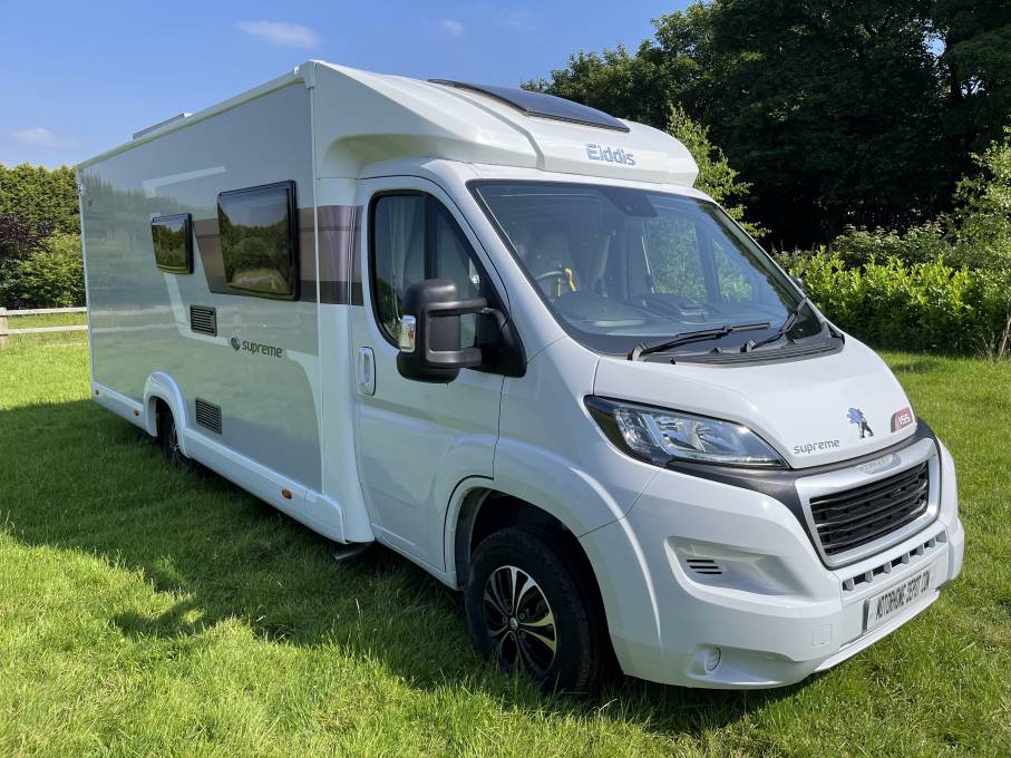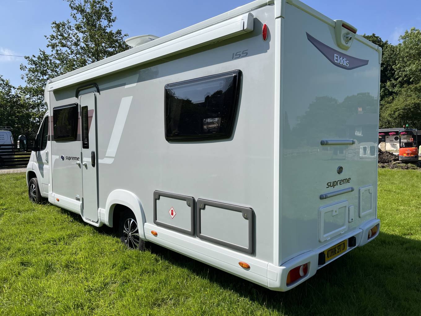 Elddis Supreme 155, Luxury 4 Berth with Fixed Rear Bed. This motorhmome was registered in July 2022, it has one owner from new with low mileage and is in Immaculate conditon. The motorhome is beautifully finished and has an open spacious living area. At the rear there is a fixed French Bed and next to this is a good sized bathroom with separate shower compartment. In the centre there is a well equipped kitchen, including a microwave and at the front is the lounge area with settees and captains seats. It comes Cab Air Con, Cruise Control, 4 Seat Belts, DAD Radio, Rear Camera, Blown Air Heating, Alloy Wheels, Canopy Awning, TV Aerial and Solar Panel. It also comes with Gas Bottle, Mains Lead and 2 sets of keys. A stunning motorhome available for viewing by appointment in Chorley, call for more photos, videos and information.