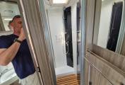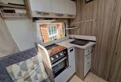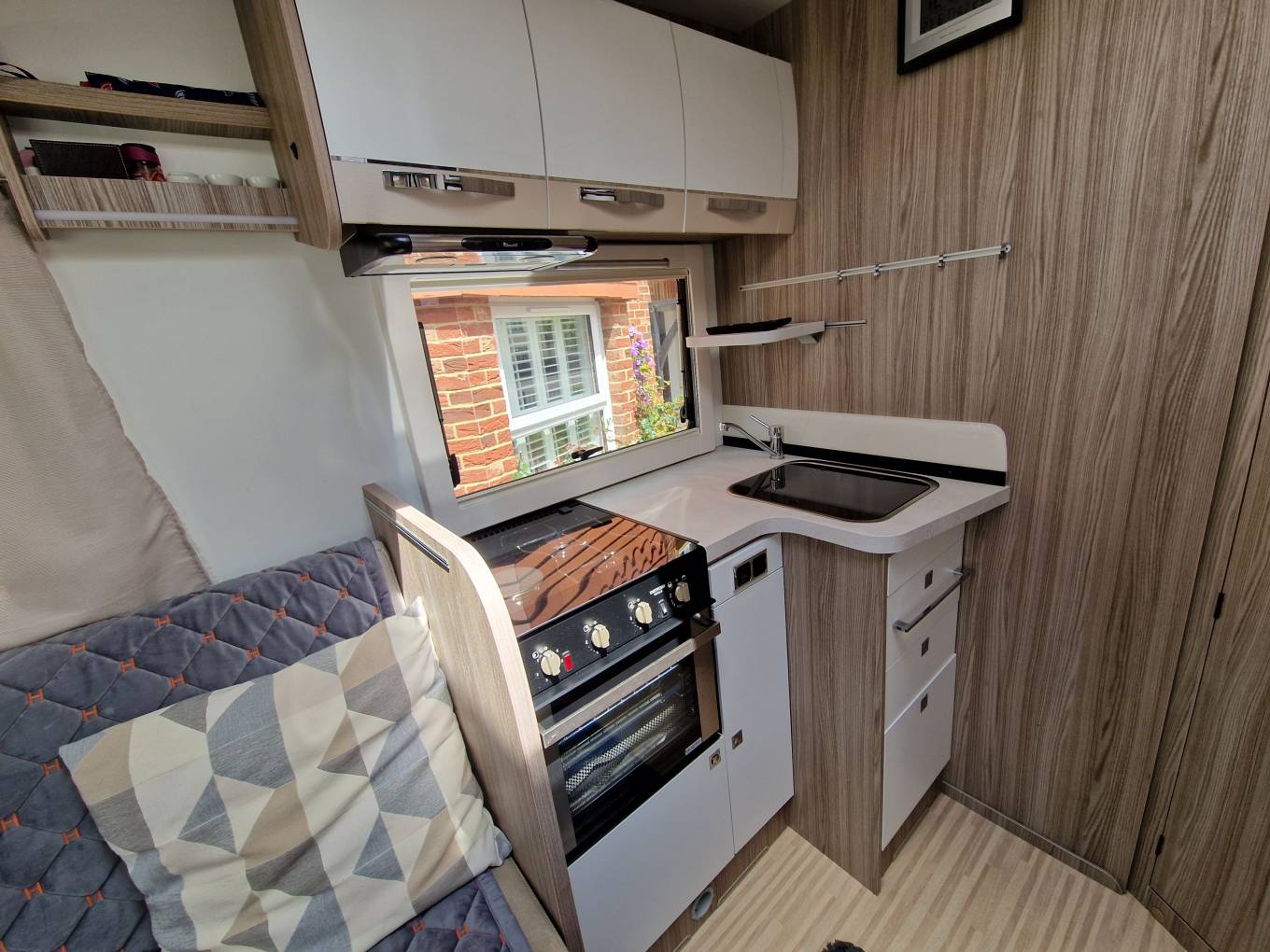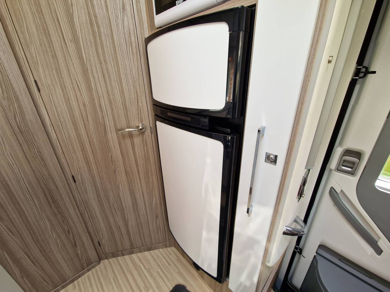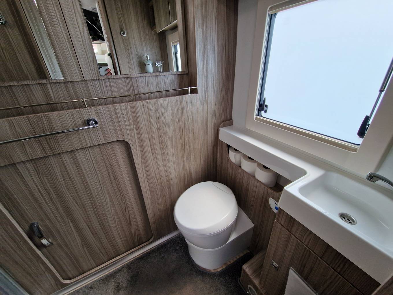 The full width rear washroom is another major feature with plenty of space, a separate walk-in shower, wash basin with mixer tap, Thetford w/c, vanity mirror, a huge storage cupboard and access to the large rear garage.