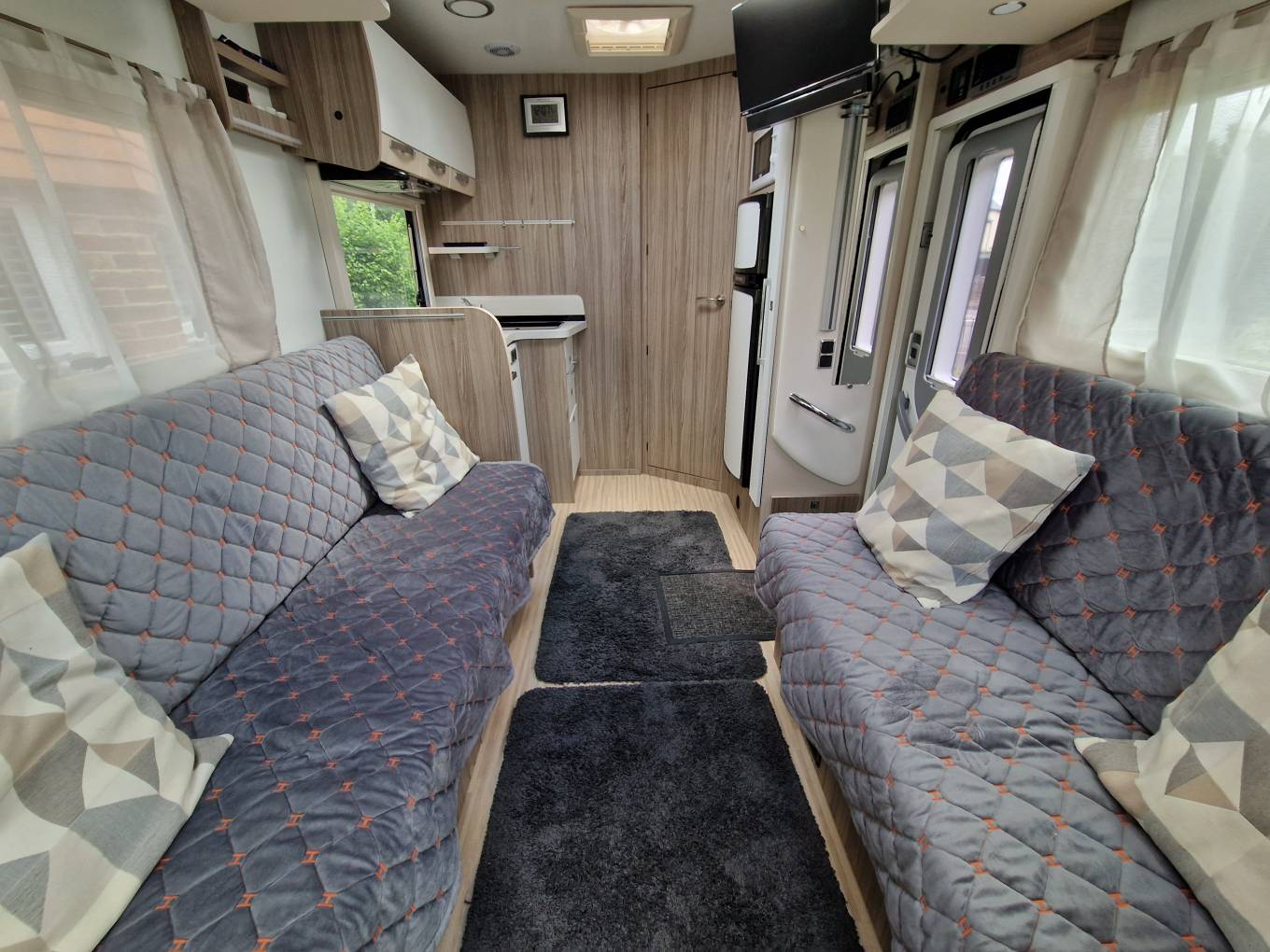 The specification also includes gas and electric heating, upgraded Truma I-net heating control system, SATNAV, window blinds with flyscreens,rear speakers,Avtex TV with soundbar,fitted WI-FI,solar panel, external BBQ point and 120l fresh water tank and 105l waste water tank.