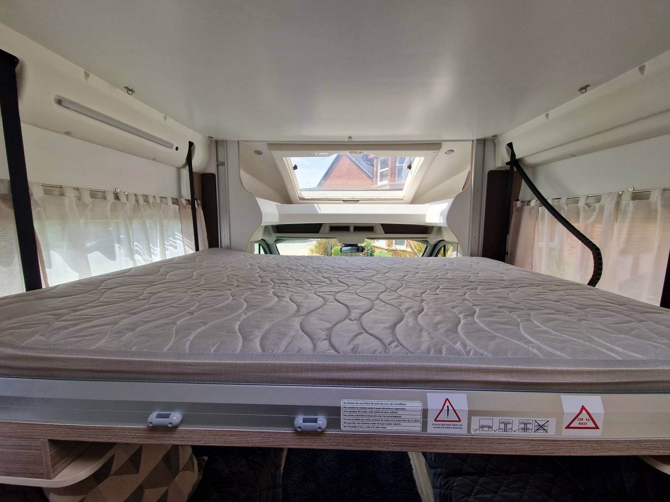 At night-time, the seating area easily converts into a comfortable double bed and then you have another major feature which is the electric drop-down double bed which is fully adjustable.