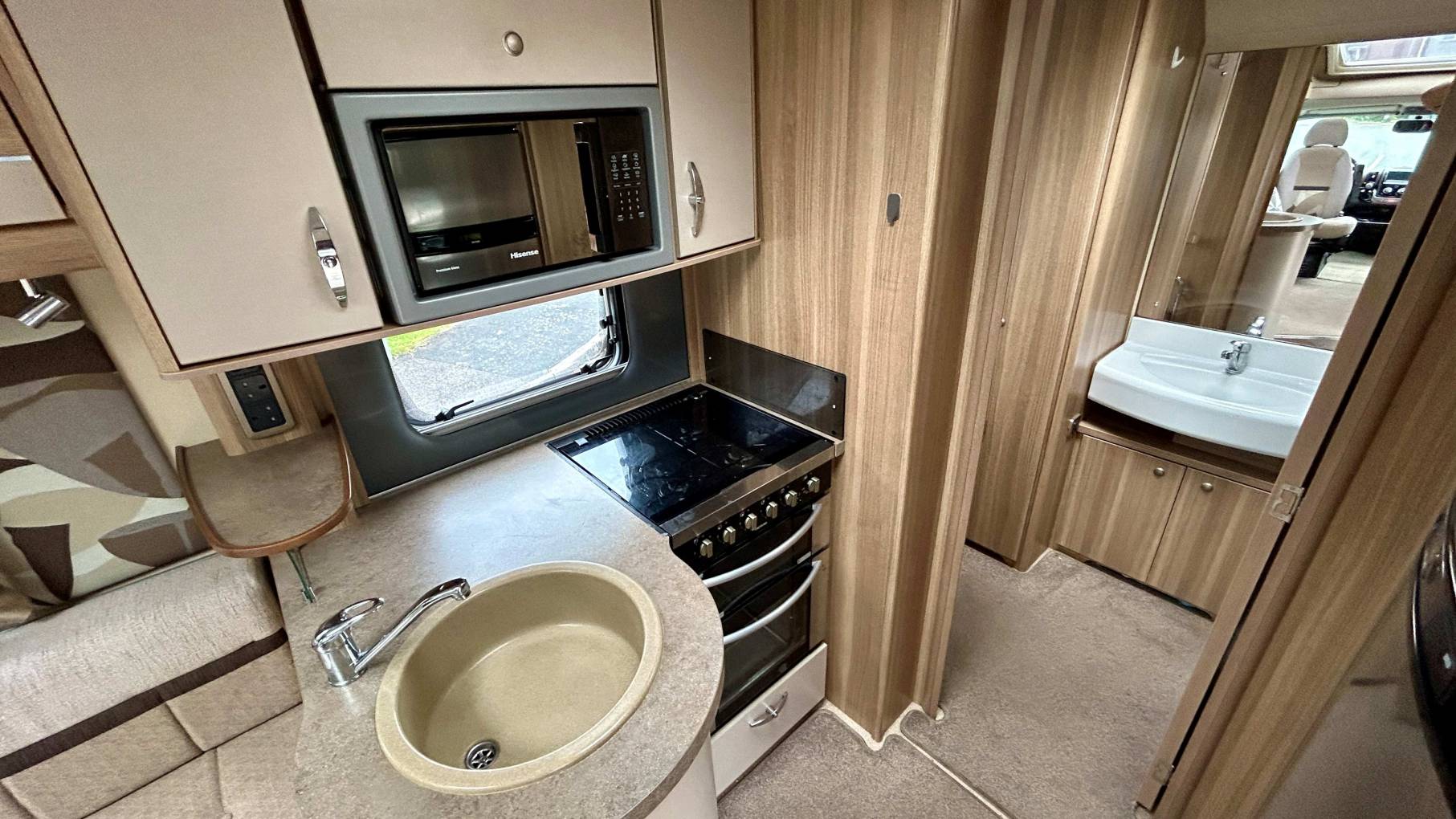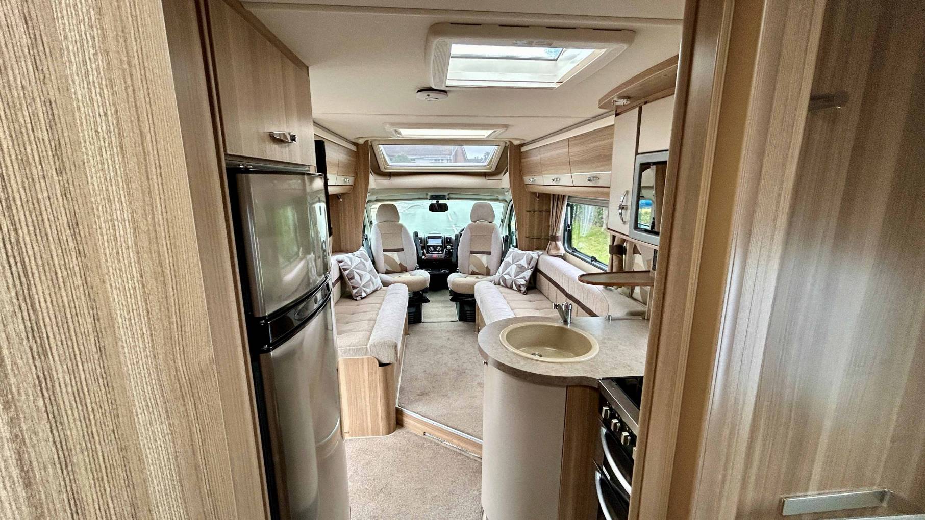 This stylish and spacious 2 Berth with 2 seat belts comes with an upgraded Kenwood digital head unit with SatNav, DAB, Bluetooth and Apple Carplay. On board Avtex WI-FI, Twin colour reversing cameras, with an in-view camera allowing you visibility whilst on the move.