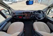 Entering the motorhome on the passenger side,you will find an excellent spacious living area that features two long side facing bench sofas and the two captains chairs. There is also a cleverly stored folding table that can be used to create a wonderful place to enjoy a meal or snack - or taken outside if you prefer. Moving back the motorhome has an extremely well equipped kitchen featuring an oven, grill, hob with 3 gas burners, microwave oven, sink with mixer tap and 3-way fridge with removable freezer compartment.