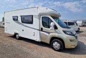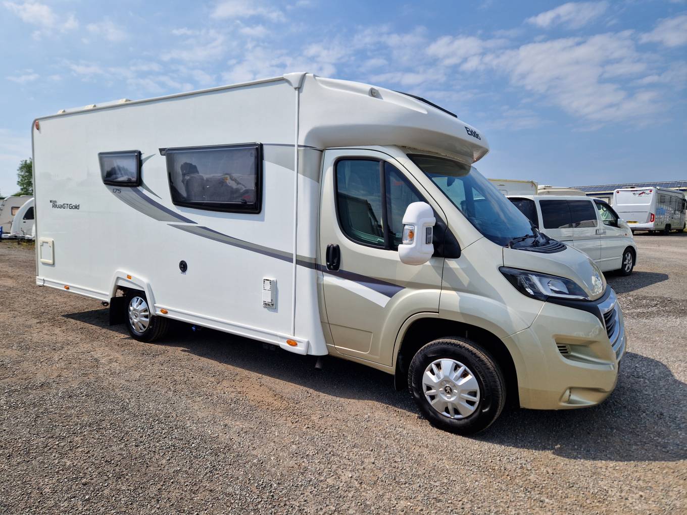Motorhome Depot are pleased to present this excellent 2015 Elddis Autoquest 175 Riva GT Gold Special Edition 2-berth,2-belt motorhome. The Riva GT Gold was a Dealer Special Edition that was originally sold by 3A's and is an upgrade on the basic Autoquest 175 with a metallic gold front end and superior decal stickers along the body. Based on the Peugeot Boxer SWB, it is powered by the chain-driven 130BHP 2.2 diesel engine and 6-speed gearbox. Having only covered 23000 miles, it had had 3 owners and comes with service history upto 10.2.24 and a habcheck was completed in 11.23. The MOT is valid until 15.12.2024 with no advisories. It has a GVW of 3300kg so can be driven on a standard UK licence and is 7.2m long.This motorhome has been really cared for by its present owner and is in very good condition.