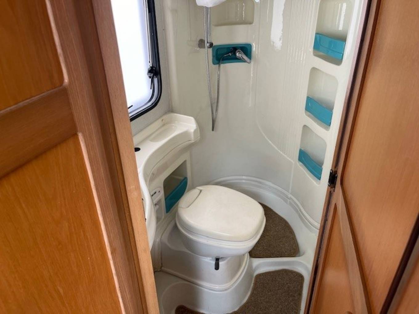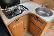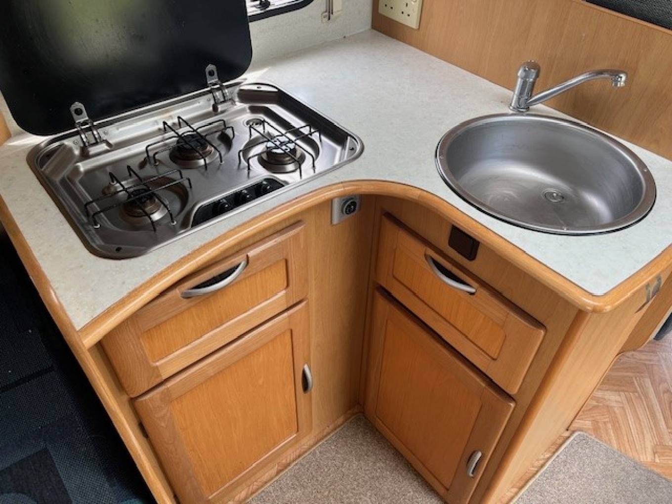 Sleeping is via the Rear Fixed French Bed - this bed can also be raised for under bed storage. A second bed can also be made from the Dinette Area