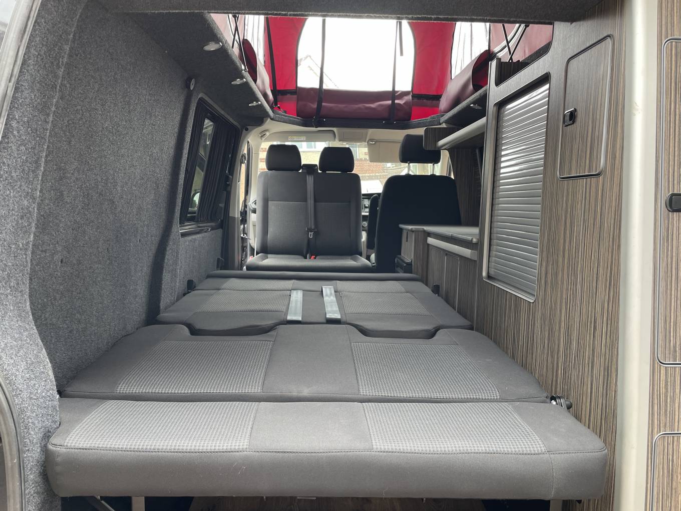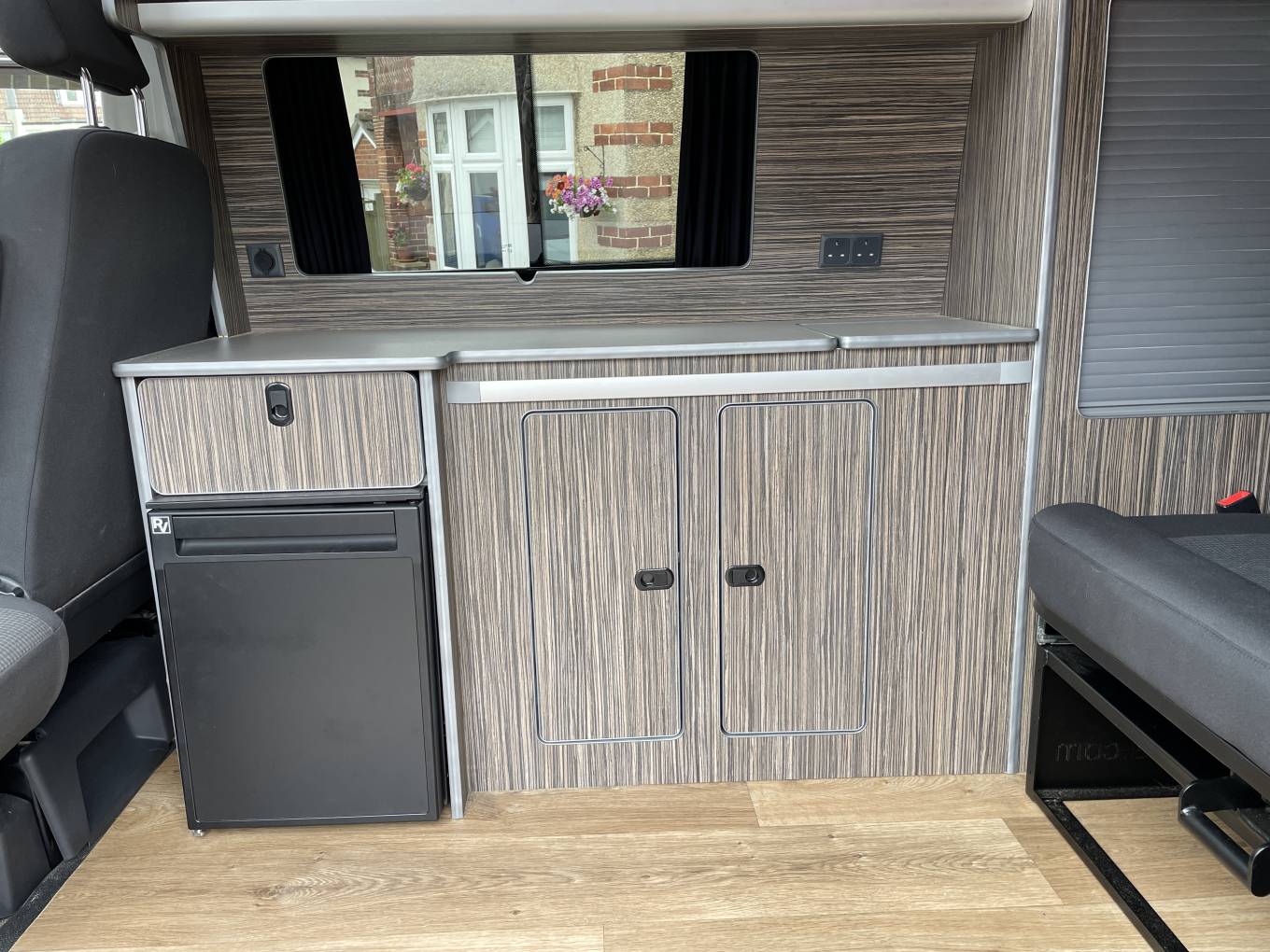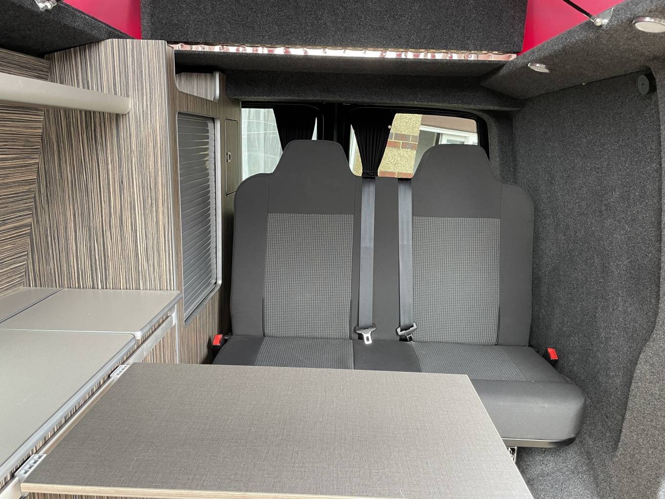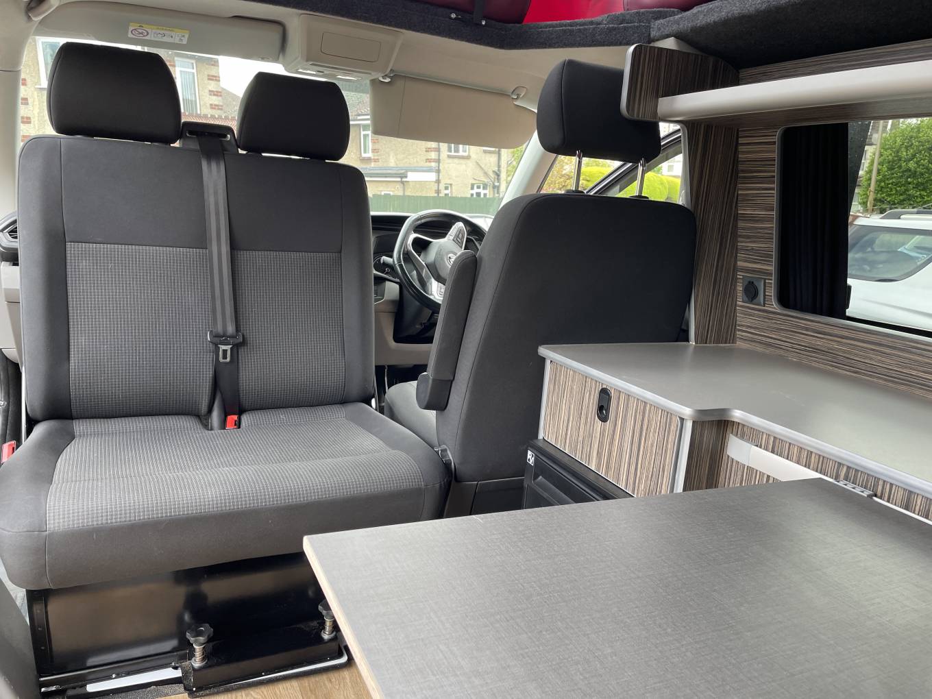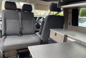 New To Market, a superb 2020 VW T6 Transporter (T30) pop top campervan converted by specialists "Westcoast Transporters" finished in black, with black side bars and black alloys. A stylish camper that really stands out whether at the beach, campsite or on the road.