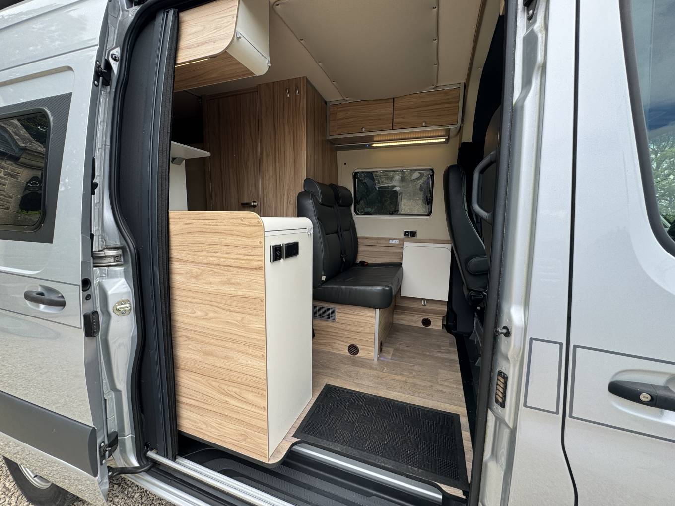 In the cab, the vehicle has a automatic gearbox, reversing camera, air conditioning, a DAB radio, electric windows and electric mirrors. Externally there is a Fiamma F45 wind out awning to allow al fresco dining.