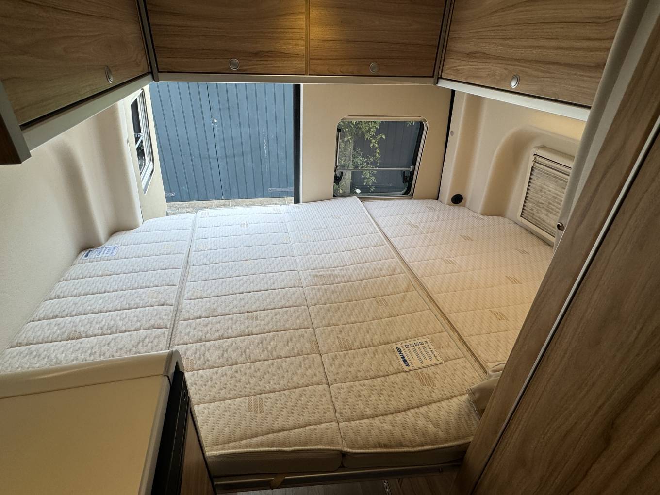 Starting at the rear of the motorhome you have a the large double bed that also lifts up to maximise the space. There is also plenty of storage underneath and on the overhead lockers.
