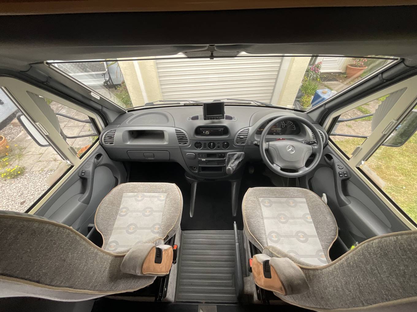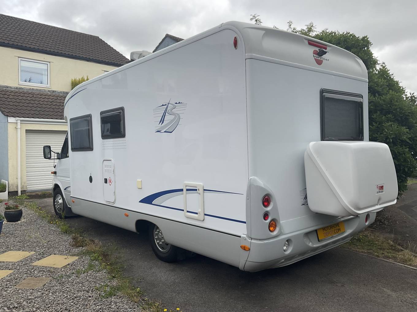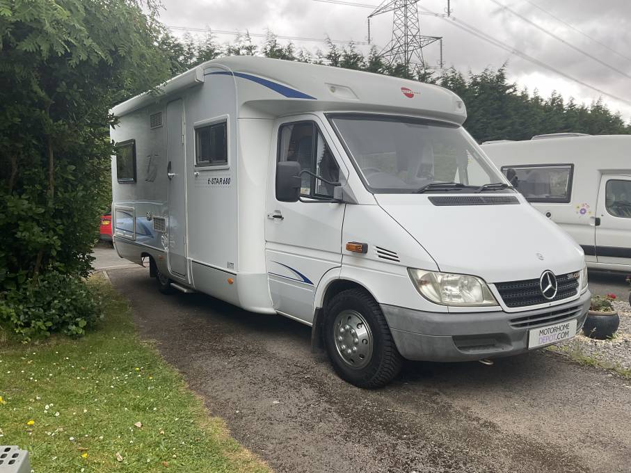 Extremely well maintained 4 seat belt, 4 berth Burstner T-Star 680 motorhome with fixed rear bed and washroom, front lounge motorhome on a Mercedes base vehicle with manual gearbox, only covering 55k miles. Serviced regular by the owner and had replacement tyres two years ago. Accommodation is provided in the rear fixed bed with upgraded matteress adjacent to a comprehensively fitted washroom which comprises Thetford cassette w.c., vanity unit with mirror and sink, full height separate shower cubicle and lots of cleverly concealed storage lockers. Further sleeping accommodation can be found in the front lounge which converts quite easily to a large double bed.