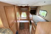 Step inside and you will see why it has been designed with families in mind. The layout consists of bunk beds to the rear which are 71 inches in length. A further two sleeping berths are above the cab and two adults can comfortably sleep here as there is plenty of headroom. The other 2 sleeping berths are made up from the central dinette.