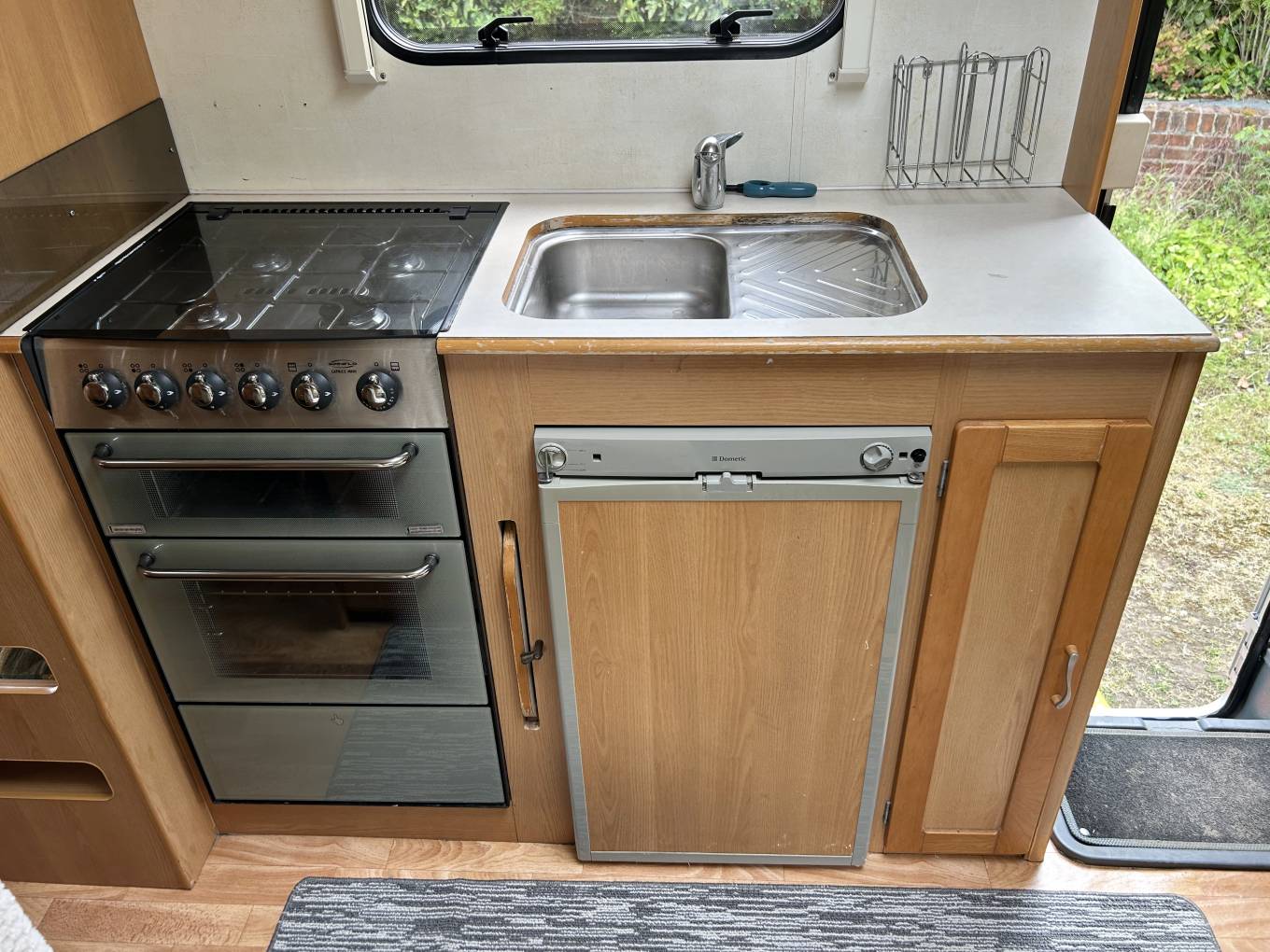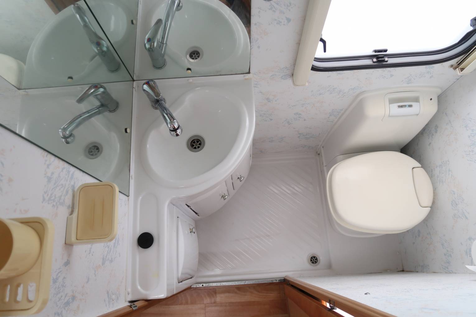 The washroom has all the facilities you need to keep fresh on your travels including a shower, a Thetford cassette swivel toilet, a wash basin with a mixer tap, a bathroom cabinet to store your toiletries and a large mirror.