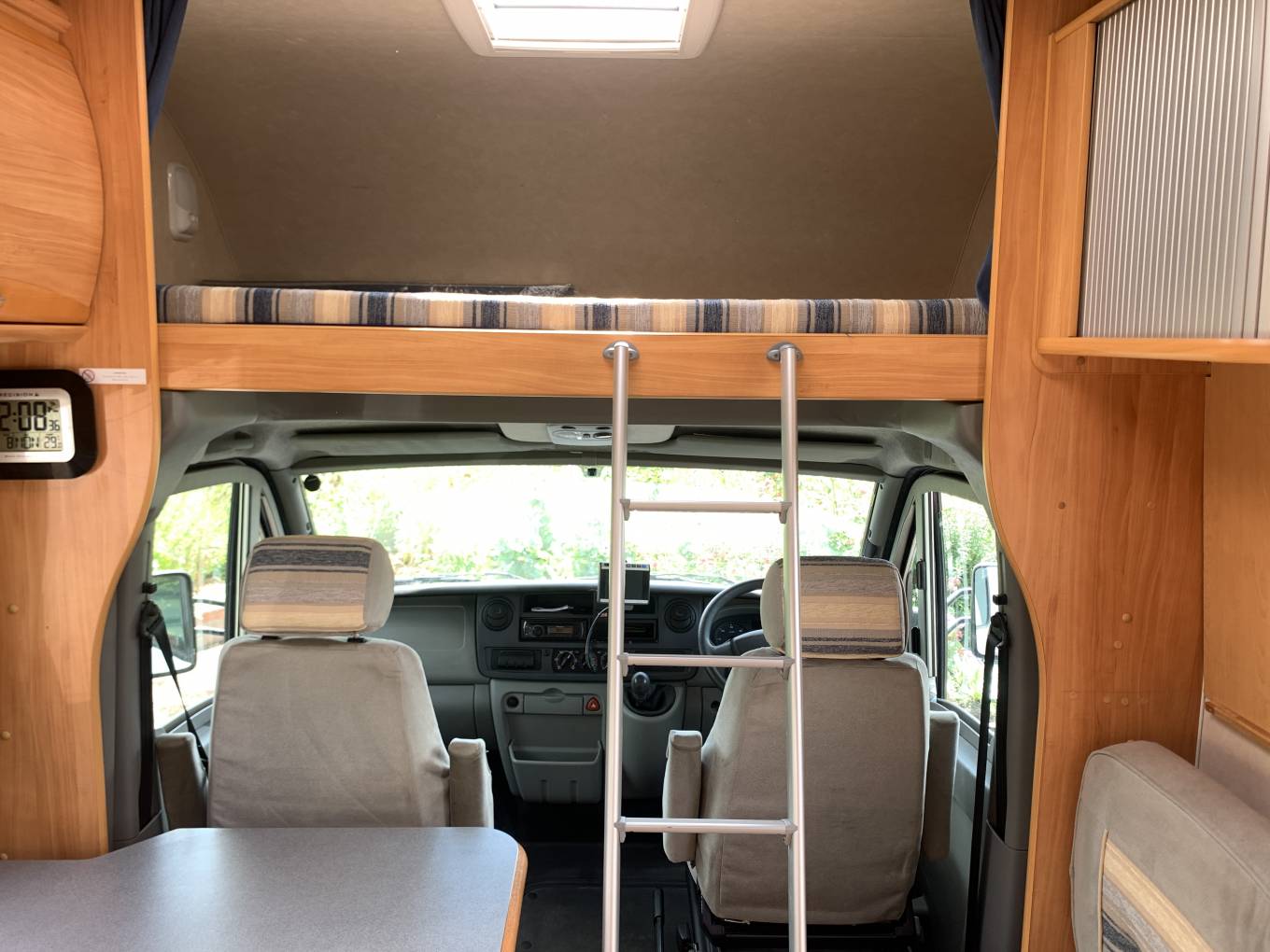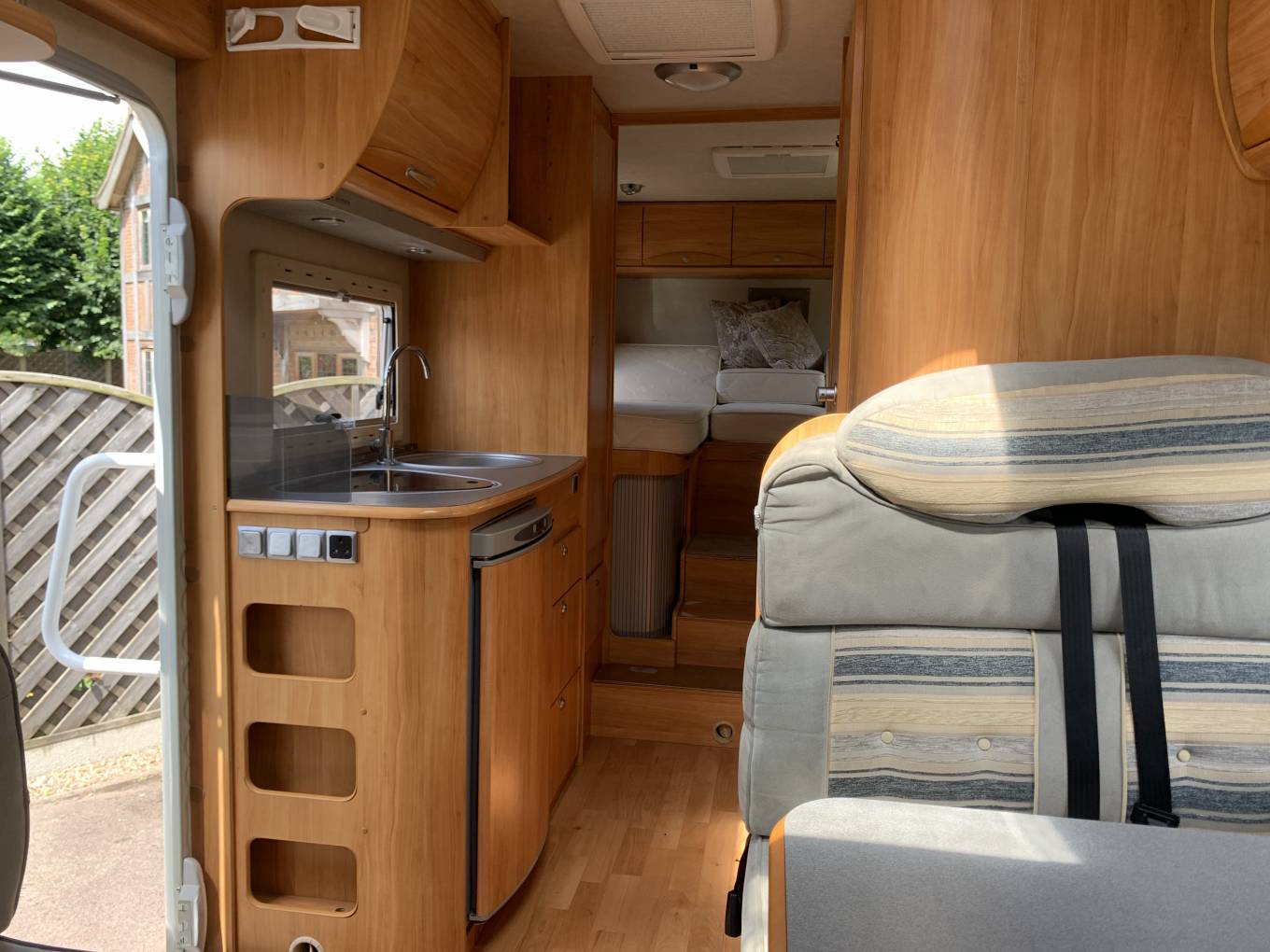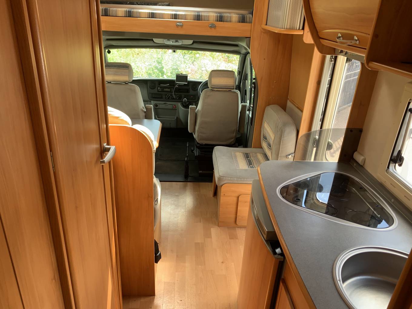Layout is double bed over the cab, two singles in the rear, which can also be made into a double and one single bed from the half dinette, however there are only 4 seats with seatbelts and at 3850 kg's C1 entitlement on your licence is required.