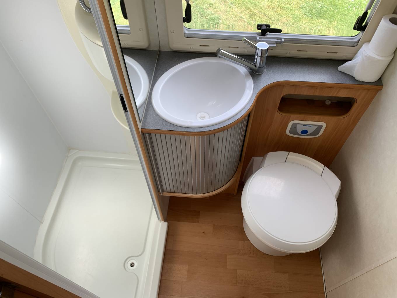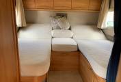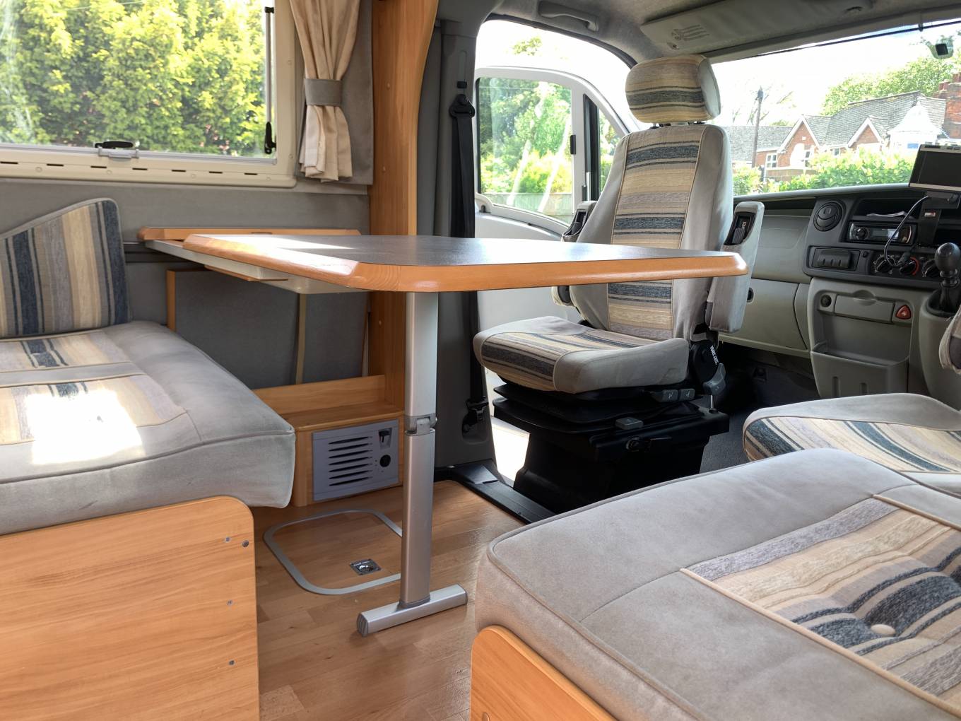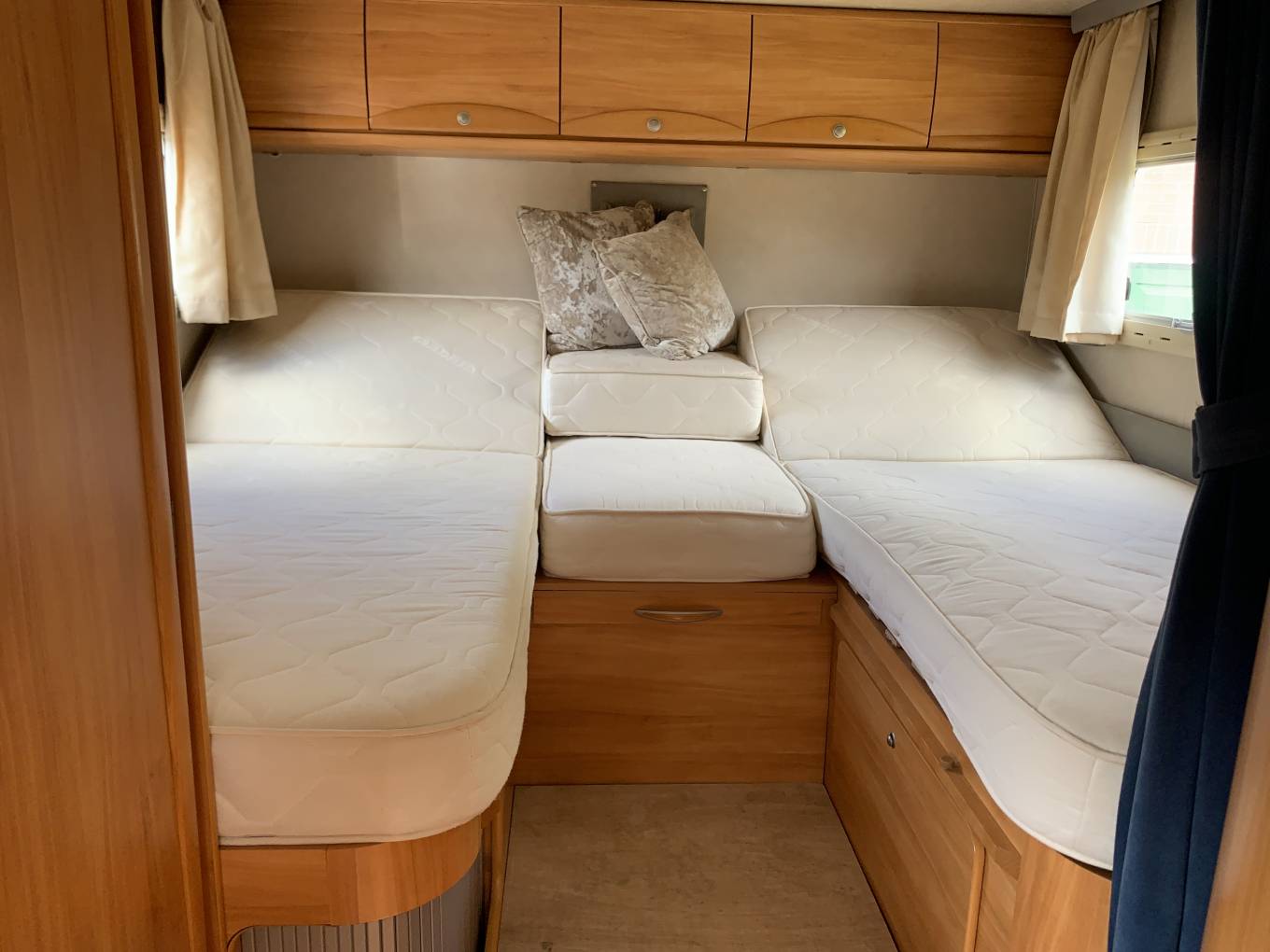 Layout is double bed over the cab, two singles in the rear, which can also be made into a double and one single bed from the half dinette, however there are only 4 seats with seatbelts and at 3850 kg's C1 entitlement on your licence is required.