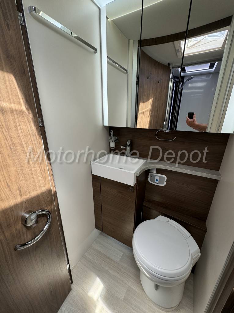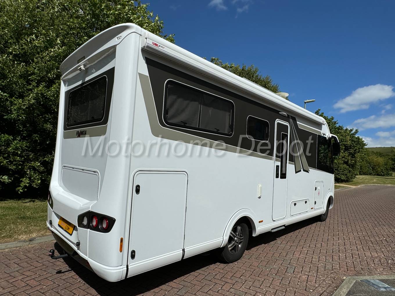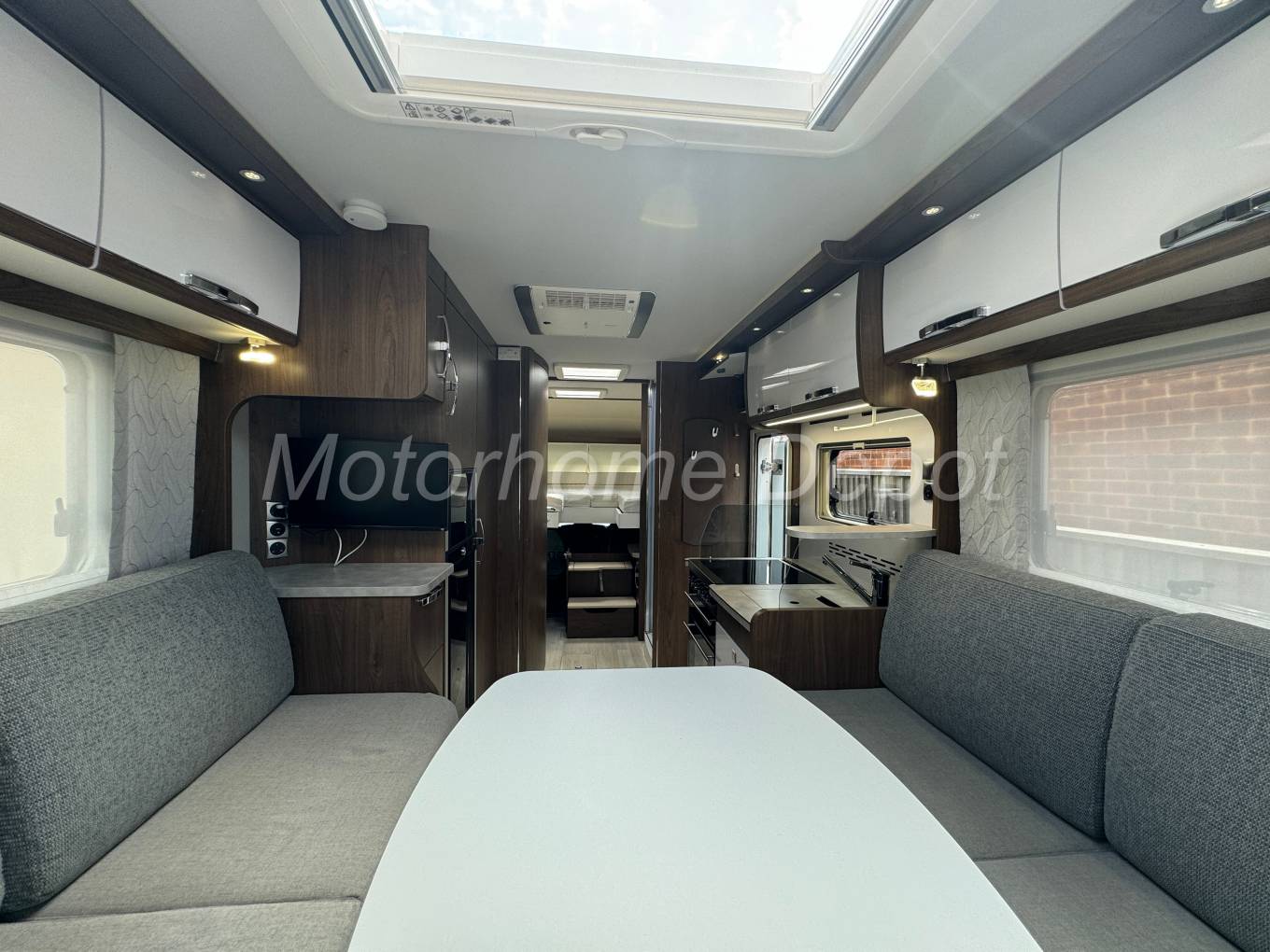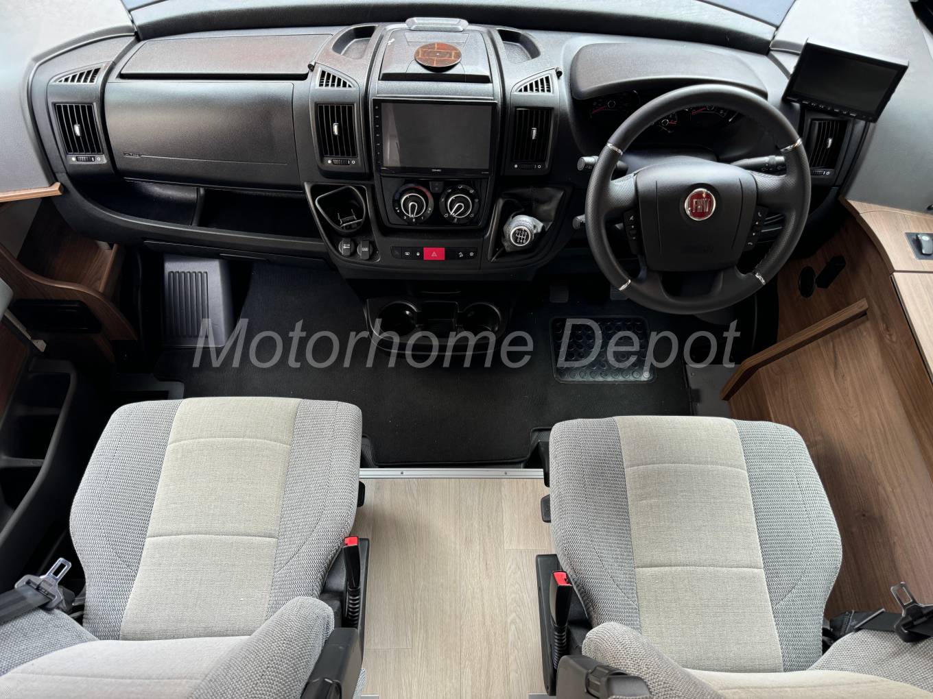 A Stunning rear lounge model of one of Germany's finest A class manufacturers Frankia. This I740 Plus model is packed with goodies and is a fantastic offering for 2 people to go travelling with the option of an additional 2 passengers. Based on Fiats ever popular Ducato chassis with a 2.3 litre turbo diesel engine in its 160bhp & the manual 6 speed gearbox. The cab benefits from: Air Conditioning; Cruise Control; Traction Control Plus; Hill Descent; Zenec multi media system with Navigation, Bluetooth, 9” screen; Electric Heated adjustable Mirrors; Twin View Reversing Camera. There is a large full width blind to the front screen that can be dropped from the top or lifted from the bottom. The side windows have Remis blinds. The front seats rotate so that you can take a brake from the road. As you would expect for a vehicle of this late plate it is presented in lovely condition, It has had 3 mechanical services the last in 05/23 & 4 Habitation services at SMC the last being 05/24.