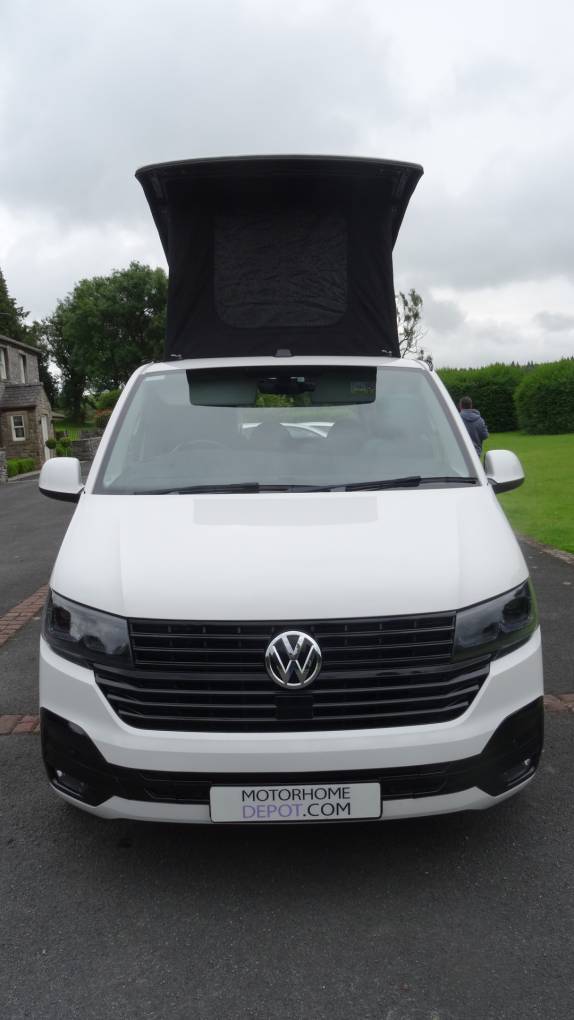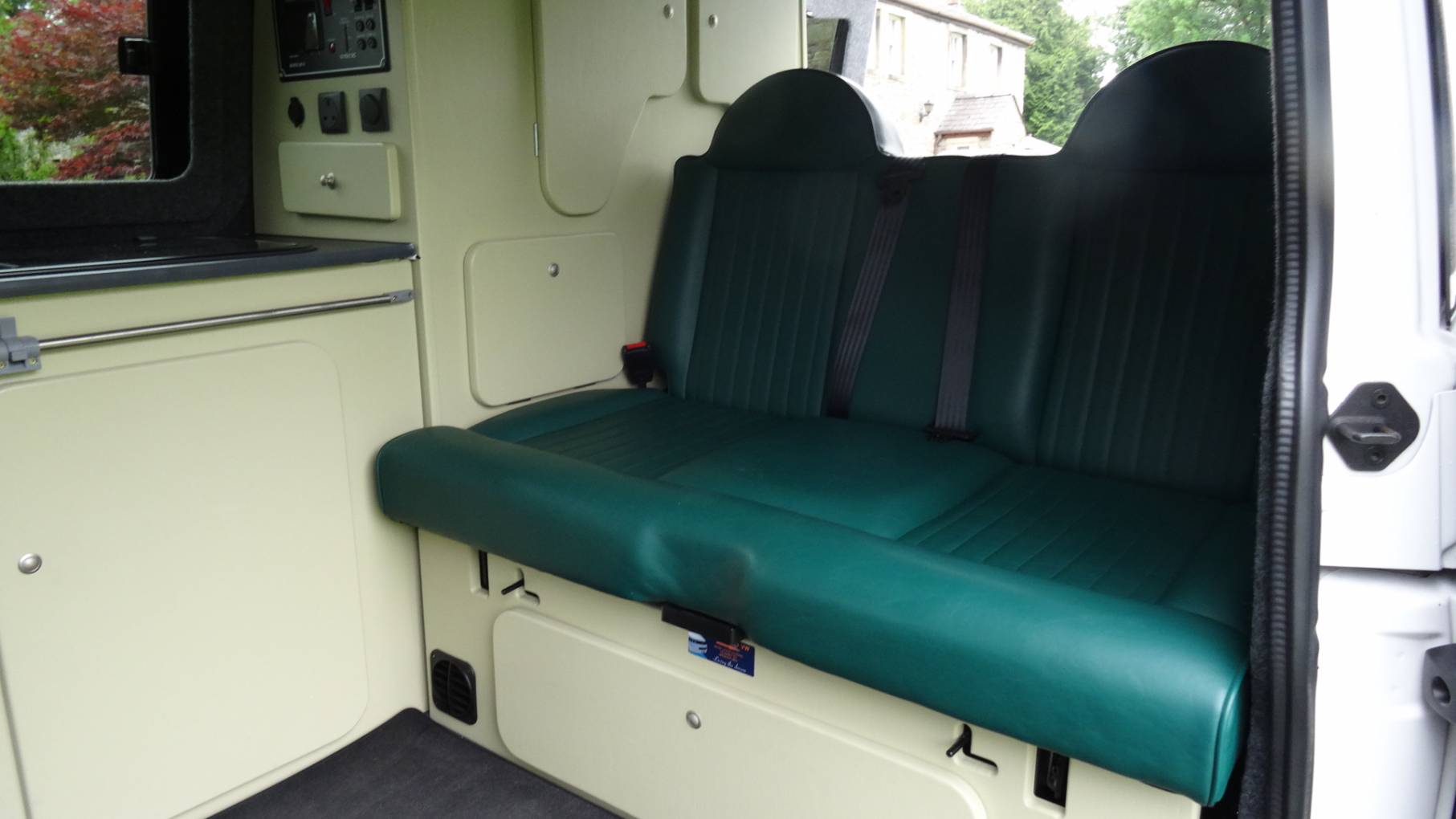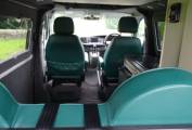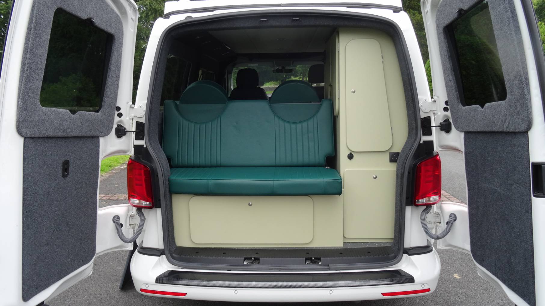This outstanding VW T6.1 has been converted by the long-established company Teahupo’o and is a credit to its owners. The interior is fitted out in eye-catching bottle green upholstery with pale yellow/green units.