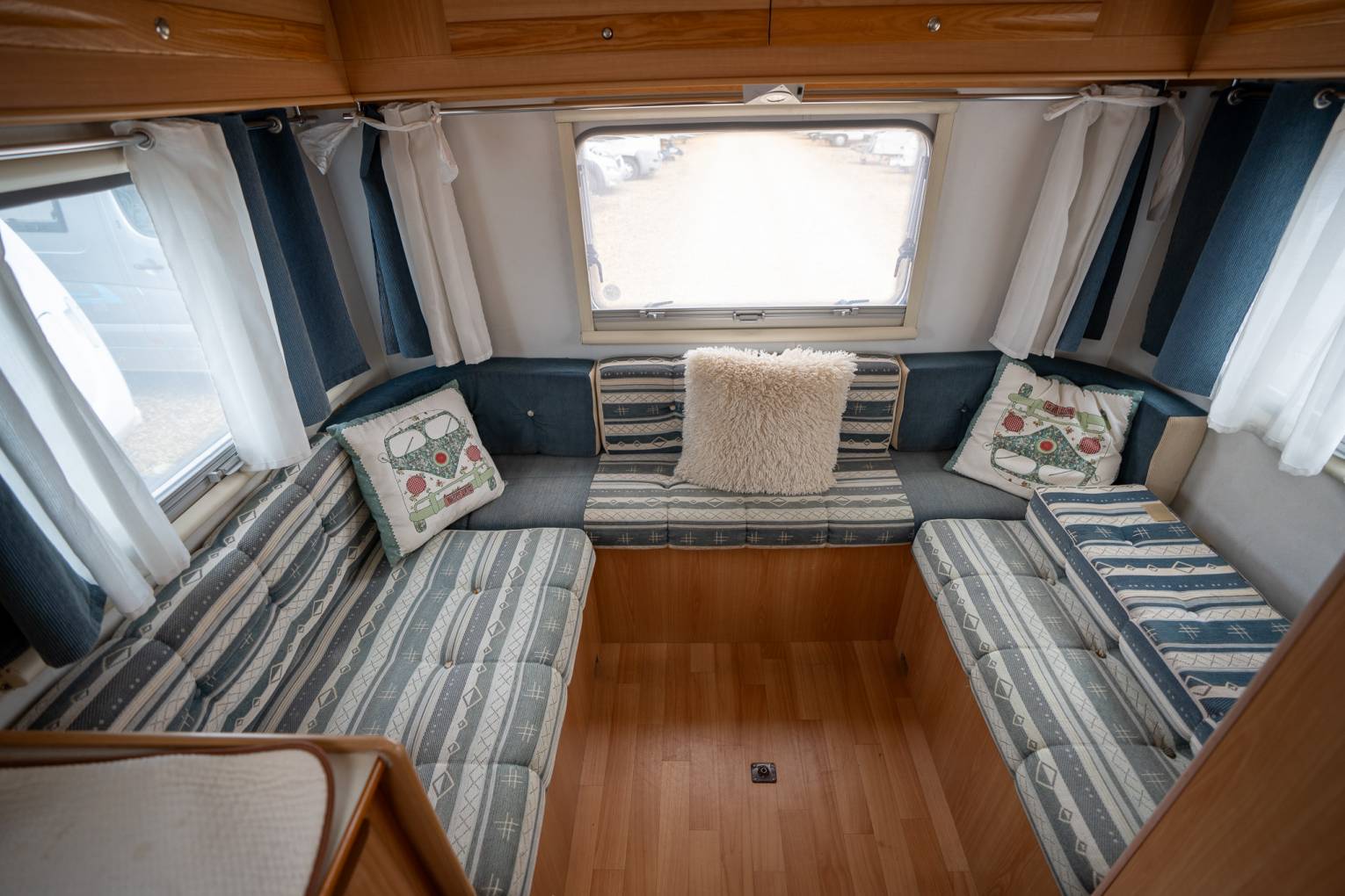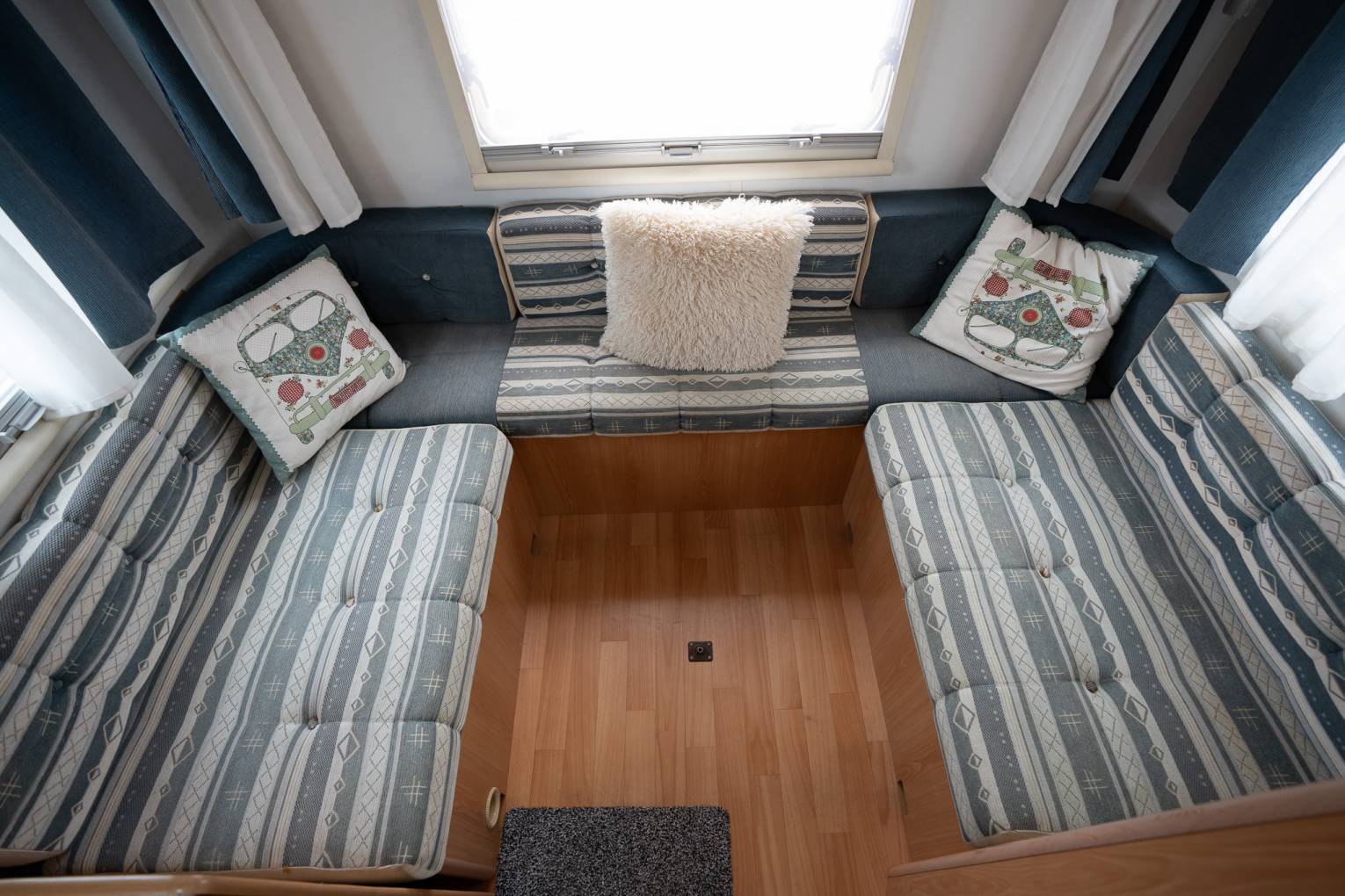 For night time, the 3 double beds comprise of a spacious OverCab bed and inlet cushions to convert the U- Shaped lounge and Centre Dinette area. All comfortably sleep 2 adults in each.
