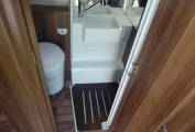 Next to the fridge is the wash room, with a toilet and a screened shower and hand basin.