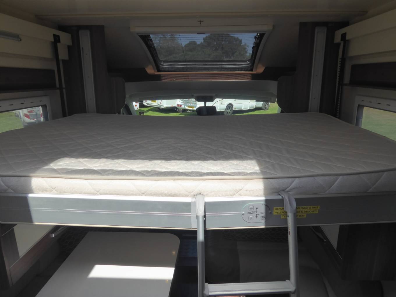 At the rear of the vehicle are two bunks, the lower of which can be removed to utilise the space as an internally or externally accessed garage.
