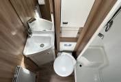 Opposite the kitchen is the bathroom which is spacious and stylishly designed. You have the benefit of a separate shower with screen doors so your bathroom doesn't get soaked like many other motorhomes. You also have a wash basin and a mixer tap, a large mirror and a bathroom cabinet to store your toiletries. And for those cold winter mornings there is even a radiator to keep you warm as toast.