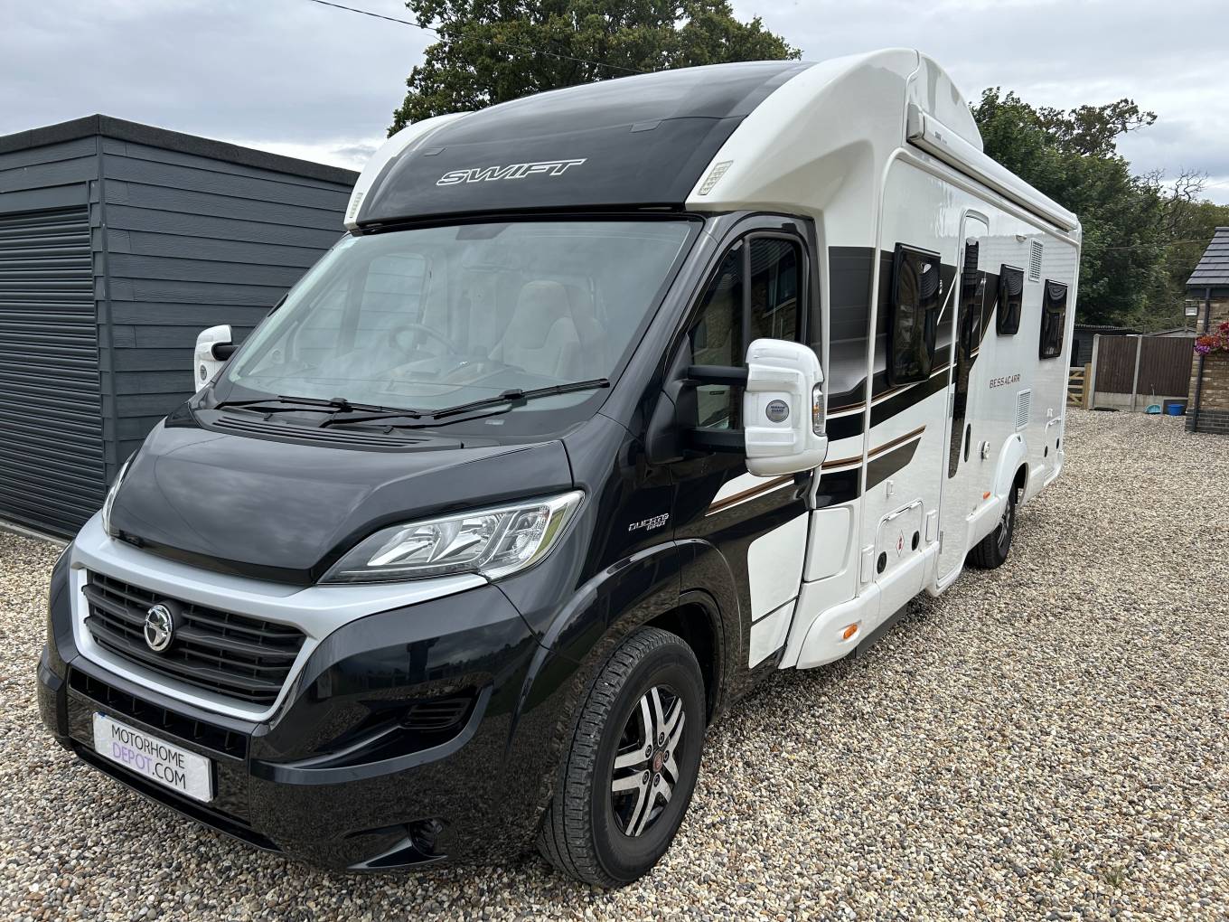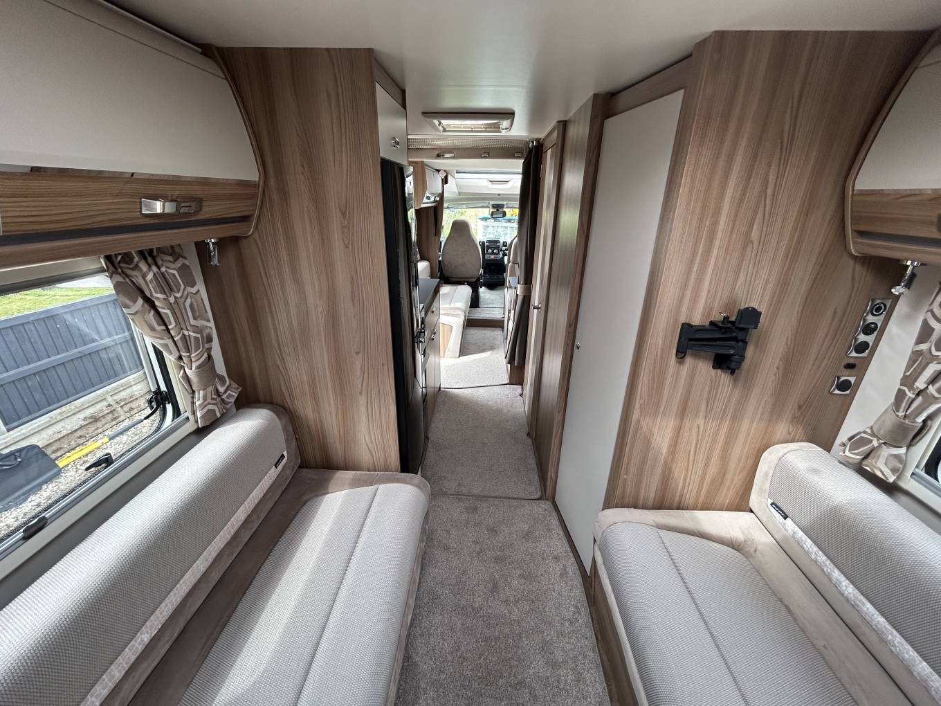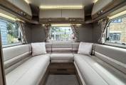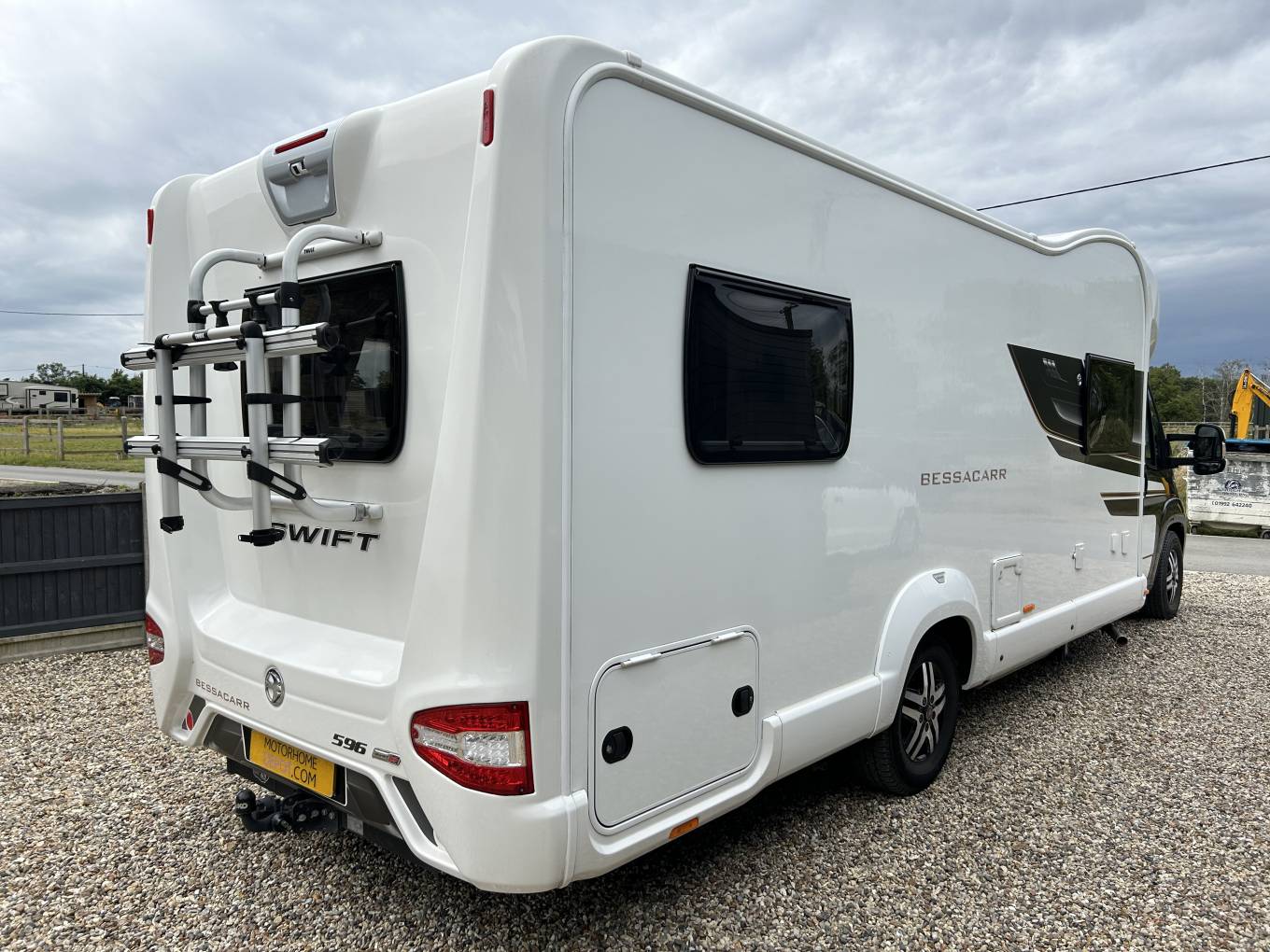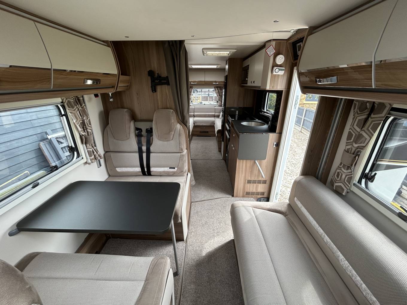 This highly desirable Swift Bessacarr 596 is presented in fantastic condition and has only covered 8,272 miles. The 596 is one of Swift's flagship models and it's easy to see why. The layout is probably the best in the entire Swift range with twin dinettes, a rear U shape lounge and a drop down bed. The interior conveys class and style from the moment you step inside and it has a whole host of luxury features including soft close drawers. The layout allows parents and children to have their own private space.