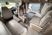 Designed with families in mind this lovely motorhome has twin dining areas so if you and the kids want some space from each other you can move to opposite ends of the vehicle. The front lounge dinette has forward and rear facing 2 seater sofas which have 2 seat belts each and the dining table which fixes on to a side rail can be removed creating more space if you need it. At bedtime this area converts into a double bed.