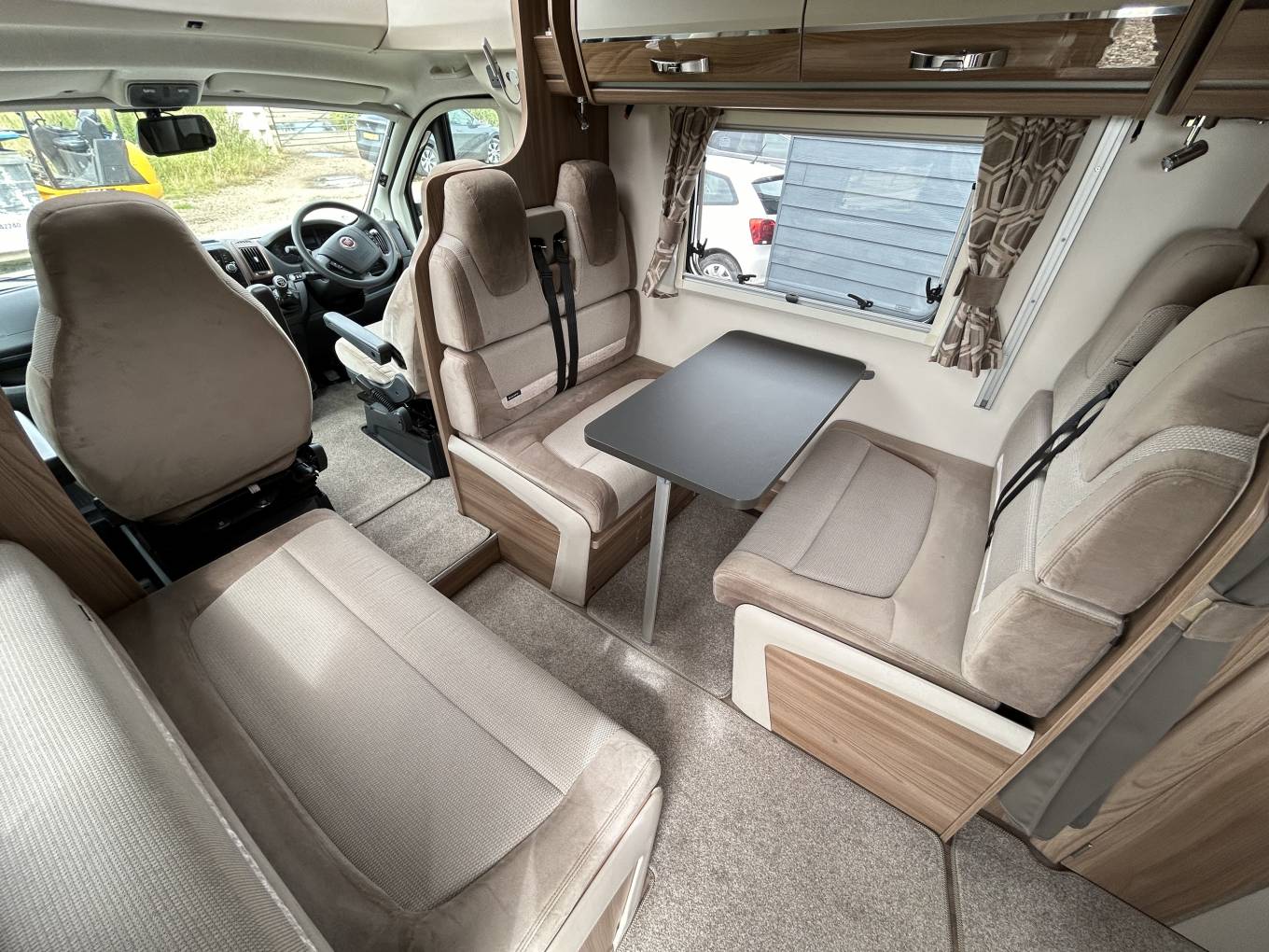 Based on the acclaimed Fiat Ducato chassis and with the powerful 2.3 l 150 bhp engine this motorhome is a real pleasure to drive. It has cruise control for motorway driving, cab air conditioning, a DAB radio with Bluetooth, driver and passenger airbags, electric windows and mirrors, steering wheel mounted controls and full cab privacy blinds.