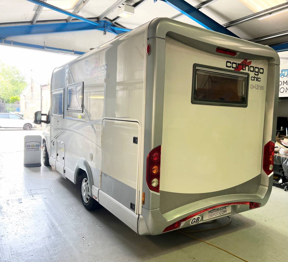 This stunning Carthago motorhome has been built to the superb standards of craftsmanship that you expect from this highly acclaimed manufacturer. With its large rear garage, being a left hand drive, this motorhome is the perfect vehicle for a couple who want to explore Europe and enjoy luxury accommodation at the same time. Externally, the motorhome looks very appealing with its eye-catching graphics. One of the major features is the large rear garage capable of storing all equipment for long or short adventures.