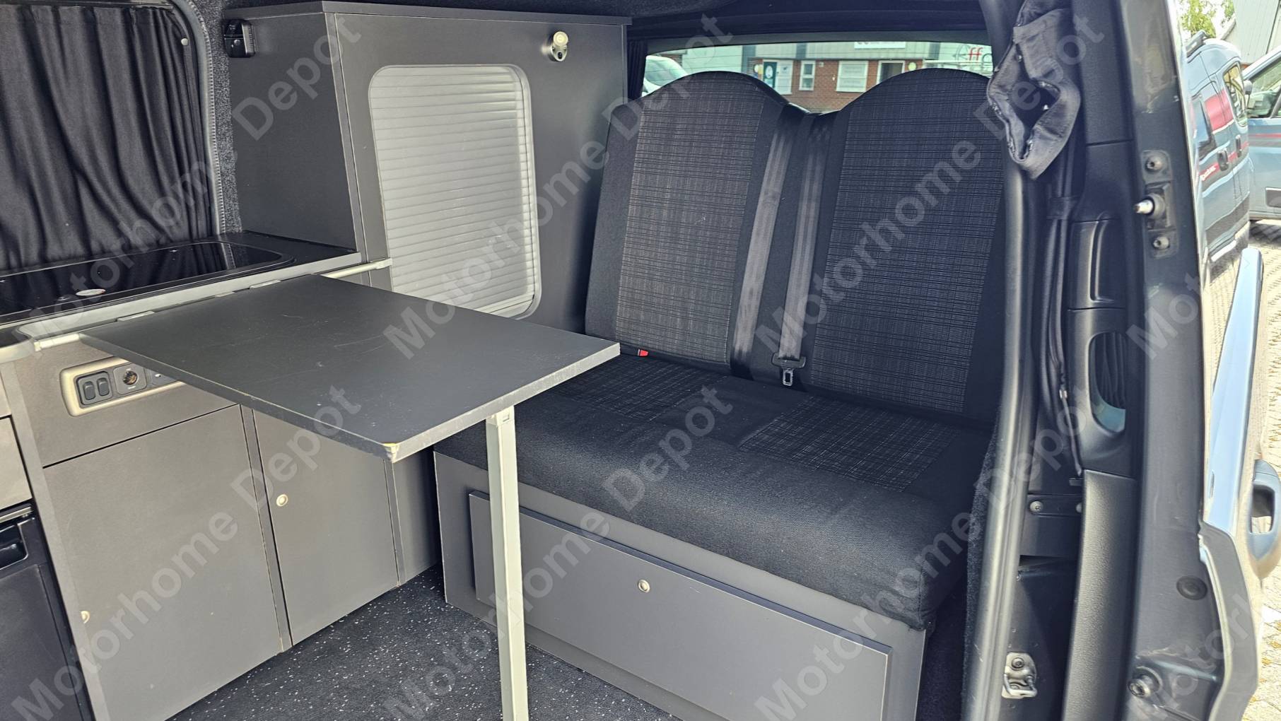 Clean and tidy campervan driven by the business owner and her husband only, on longer journeys to Fashion exibitions.