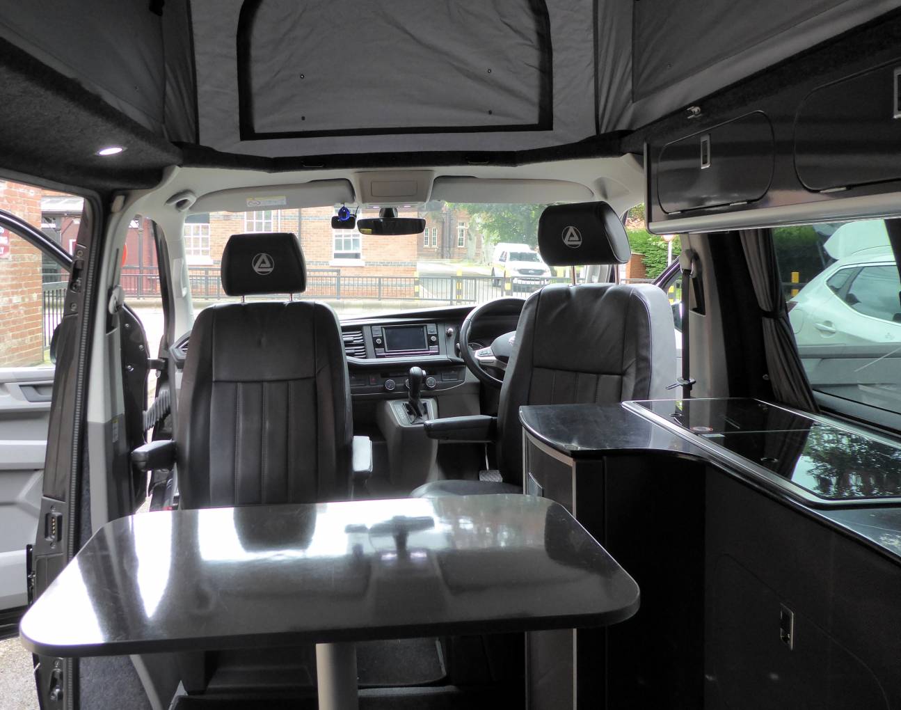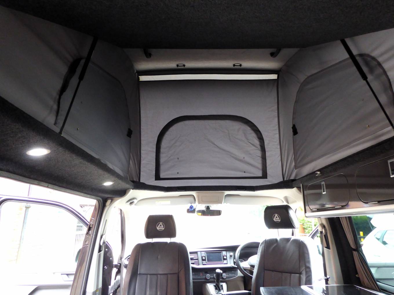 The base level includes, 4 seatbelts, pop top, 2 swivel seats, 2 gas burner hob, Euro 6 147bhp engine, cab air con, DSG automatic gearbox, RIB pull down bed and full leather upholstery.