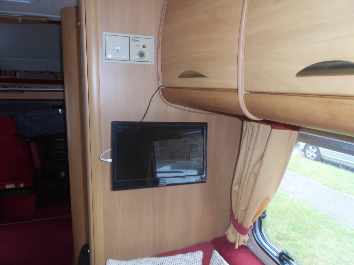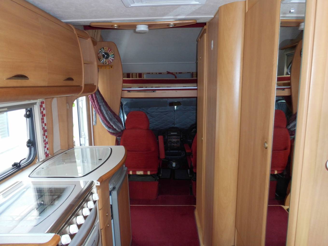 Towards the front in the cab area is another spacious over cab double bed , that can also be used for storage. The passenger cab seat also swivels round. Good Mot history.