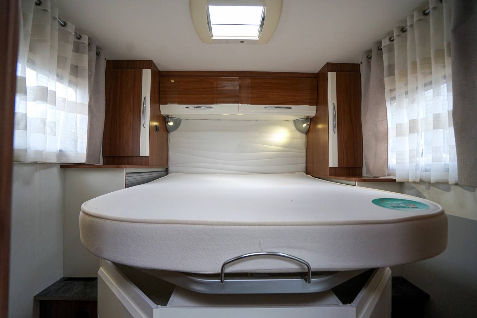 The layout consists of full island rear double with large dual entry garage with the benefit of the bed lifting on gas struts for even more storage space underneath. The bedroom can be partitioned off giving privacy to the entire rear space with toilet and wash basin on one side and large shower cubicle on the other. Electronic raisng rear bed headrest.